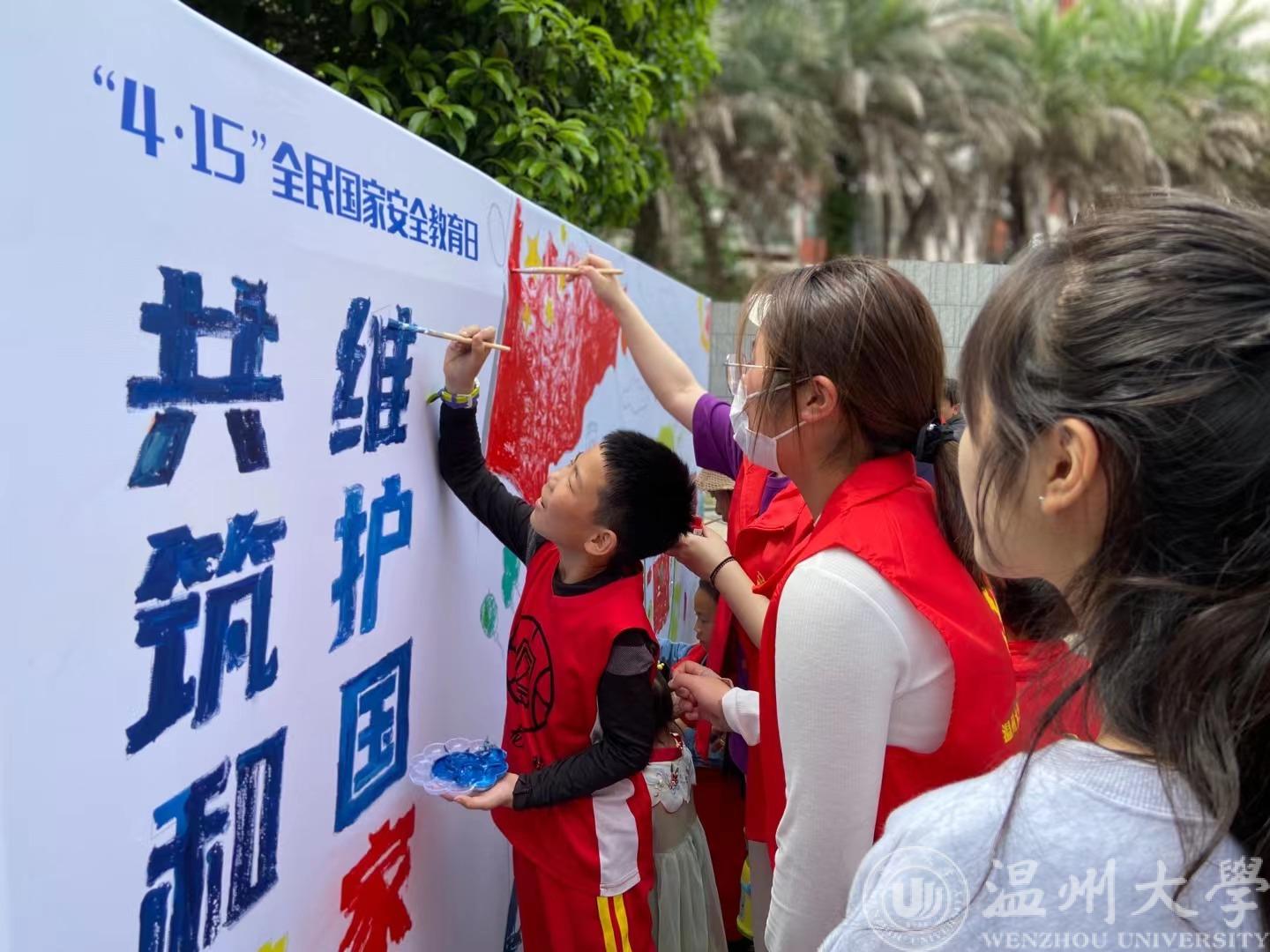 “原来还可以这样普及国家安全知识,边玩边学,就连我们大人也学到了很多。”为了将国家安全教育从小抓起,增强全民国家安全意识和素养,正值第八个4.15全民国家安全教育日到来之际,球盟会本科生第二党支部党员前往高教博园社区开展国家安全宣传教育活动,员工党员和小朋友们“大手牵小手”,用涂满颜色的画布学习基本的国家安全知识。