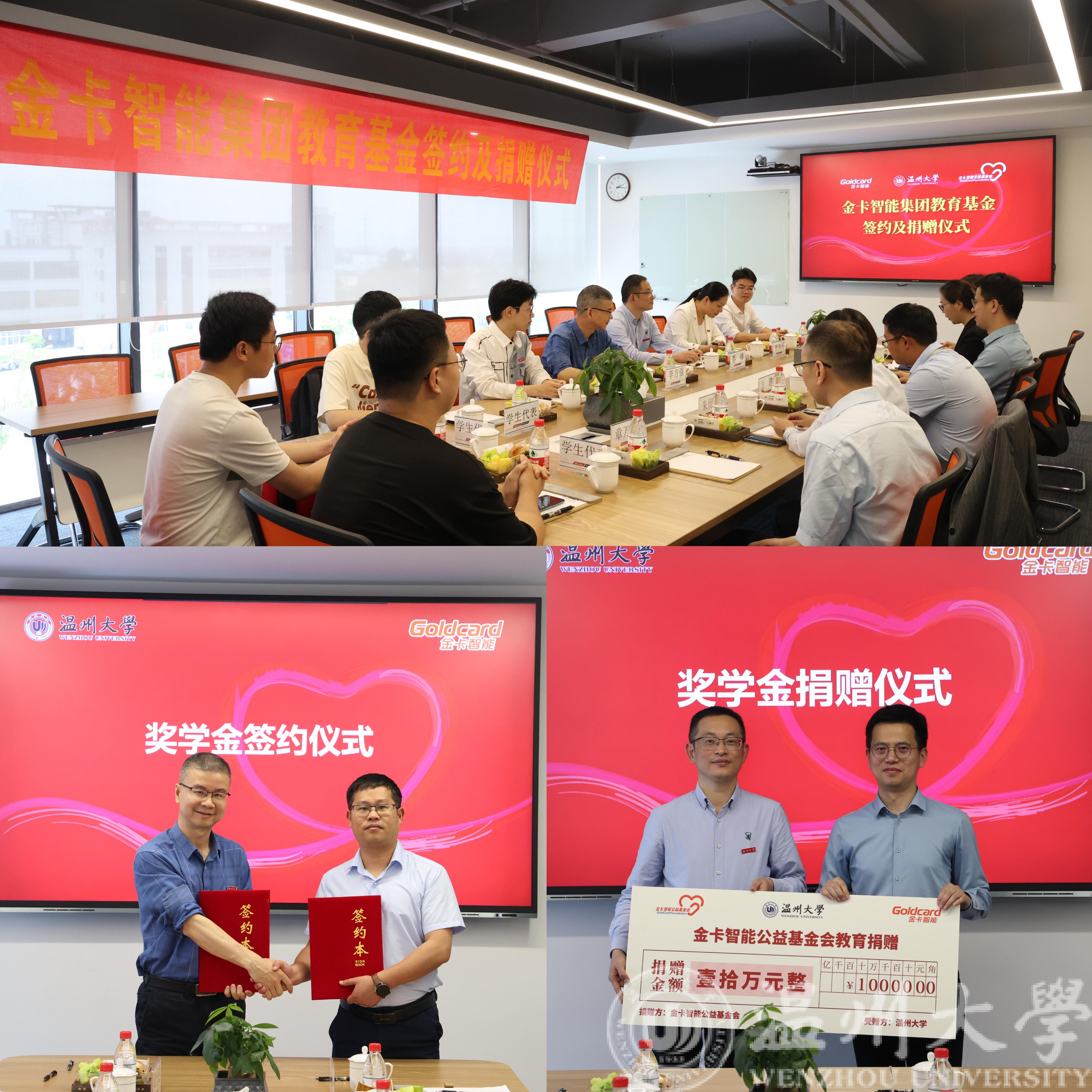随后,双方在公司会议室举行交流会。交流会上李方强书记就球盟会官网和球盟会的基本情况做了详细的介绍。李书记感谢天信仪表和金卡智能为公司学子提供了非常优质的就业平台,并指出将来校企之间不仅可以在毕业生招聘方面沟通交流,还可以在专业培养、产学研合作等多领域开展深入合作。金卡集团天信仪表党委副书记黄曙华介绍了金卡智能集团主动履行社会责任,积极投身公益事业,组织一系列文明关爱、扶贫济困、奉献爱心等活动情况。在会议上,校企双方进行了金卡智能公益基金会温大奖学金签约仪式与捐赠仪式,每年设立10万元奖学金奖励品学兼优温大学子。会上,人才招聘处蔡锋处长与现任集团副总裁的公司05届员工朱央洲和技术工艺部工程师、10届员工章万安等员工代表做了深入交流。据悉,目前该公司共有17名温大毕业生在各个岗位工作,蔡处长向员工们深入了解了一线就业需求。