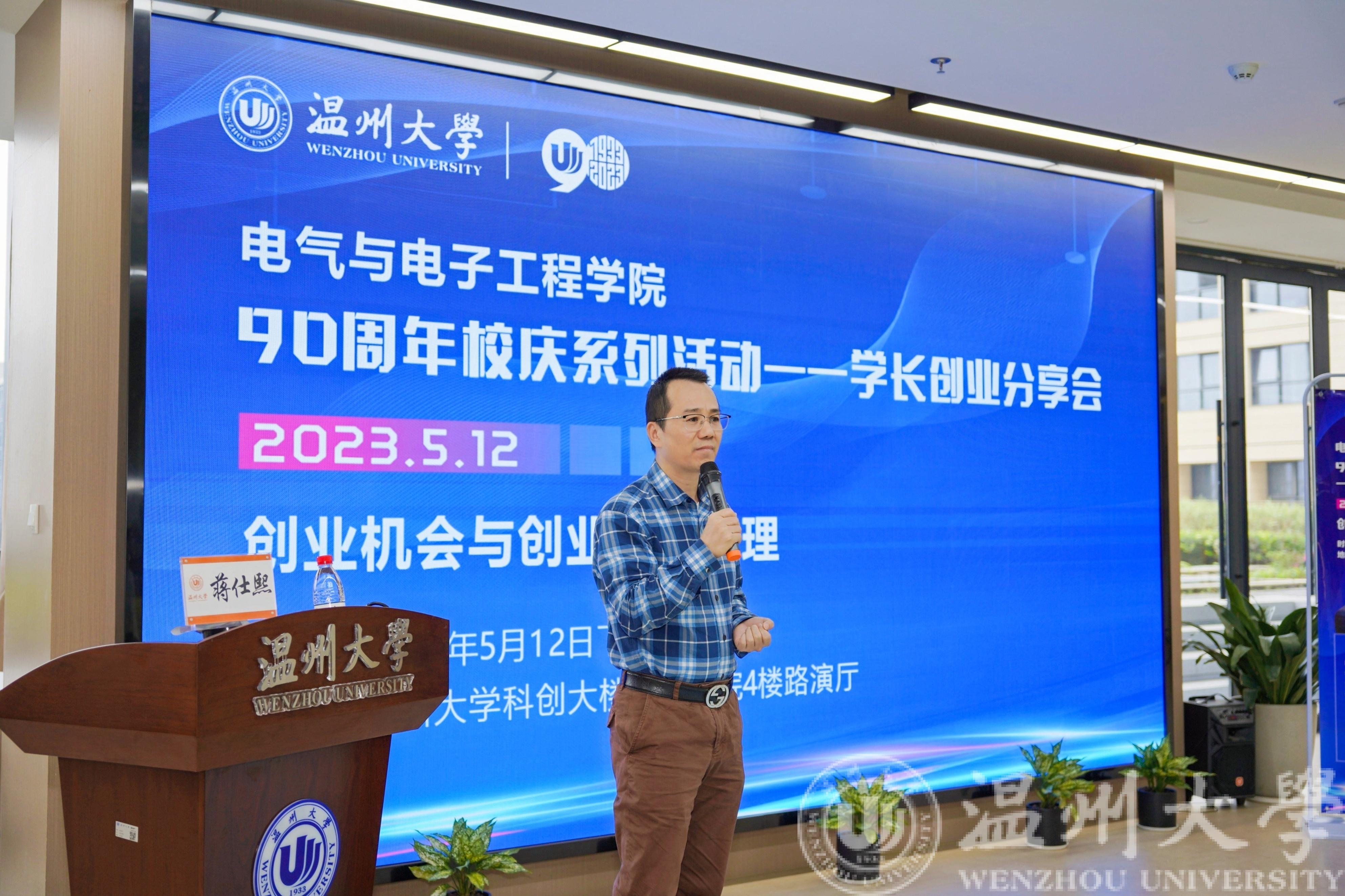 仪式结束后,蒋仕熙员工进行了“创业机会与创业风险管理”的主题分享。他通过个人经历引出了他的创业故事,并通过华为高管创业失败等详实的案例指出了当下的创业环境已经不如八九十年代,创业风险极大。随后,蒋仕熙员工分享了他认为创业成功应该具备的几个条件:激情、能力和认知,并分别用自身的经历与其他知名商业案例来印证这几个条件,得到了在场嘉宾与同学们的高度认同。最后,他鼓励同学们要努力学习,尊师重道,将来用更大的贡献回馈母校与社会。