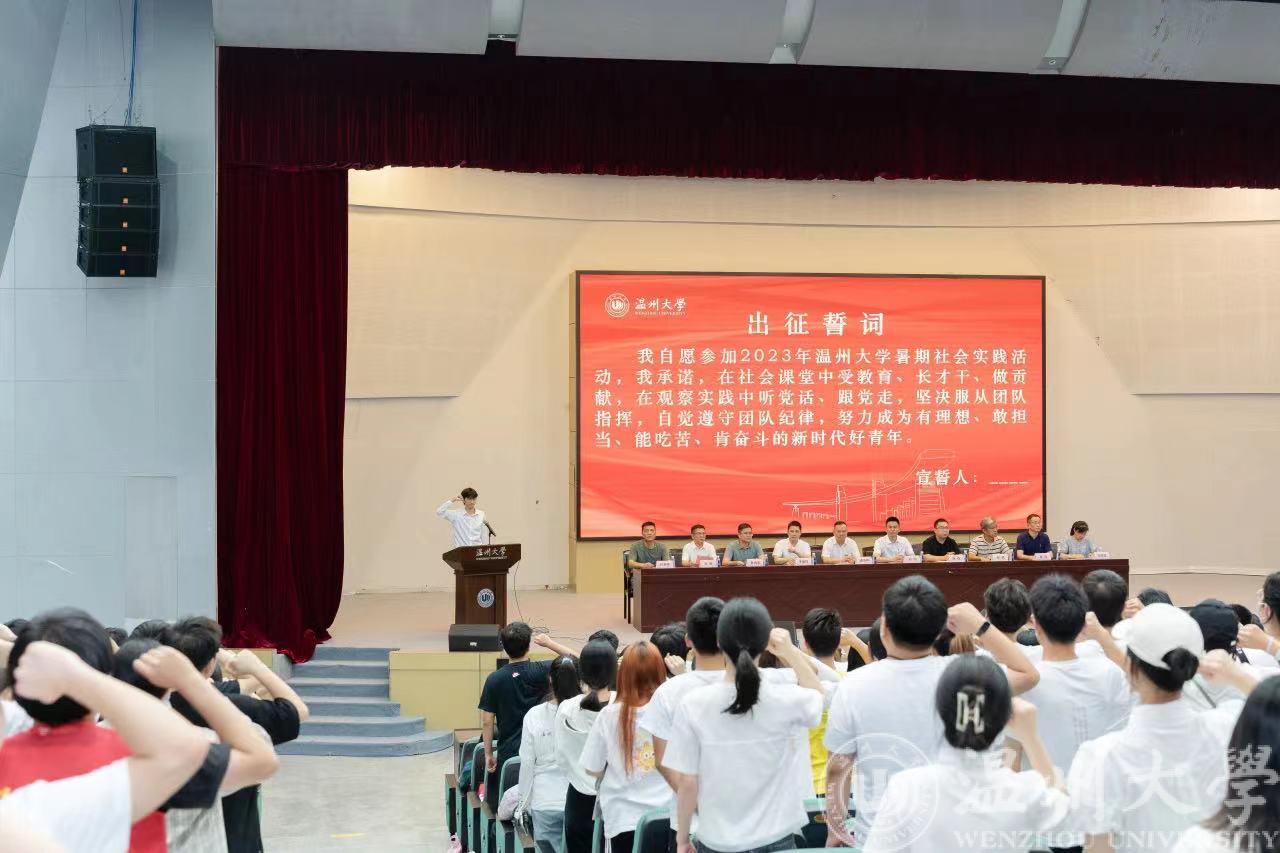 公司出征仪式结束以后,学院老师和实践队同学前往9号楼报告厅参加2023年球盟会官网暑期社会实践出征仪式暨安全教育大会。