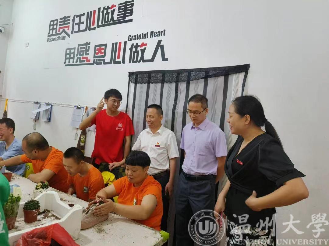 7月14日上午,球盟会官网党委委员、副董事长王舜在龙湾区残联党组成员、副理事长林时察的陪同下,来到龙湾区青苗残疾人之家慰问公司益行暑期社会实践队。球盟会官网电子工程公司党委副书记曾蓓蕾、球盟会官网团委副书记徐瑶、球盟会官网团委韩新华、球盟会辅导员陈海彤等陪同慰问,龙湾区青苗残疾人之家项目负责人麻玉娇等热情接待王舜副董事长一行。
