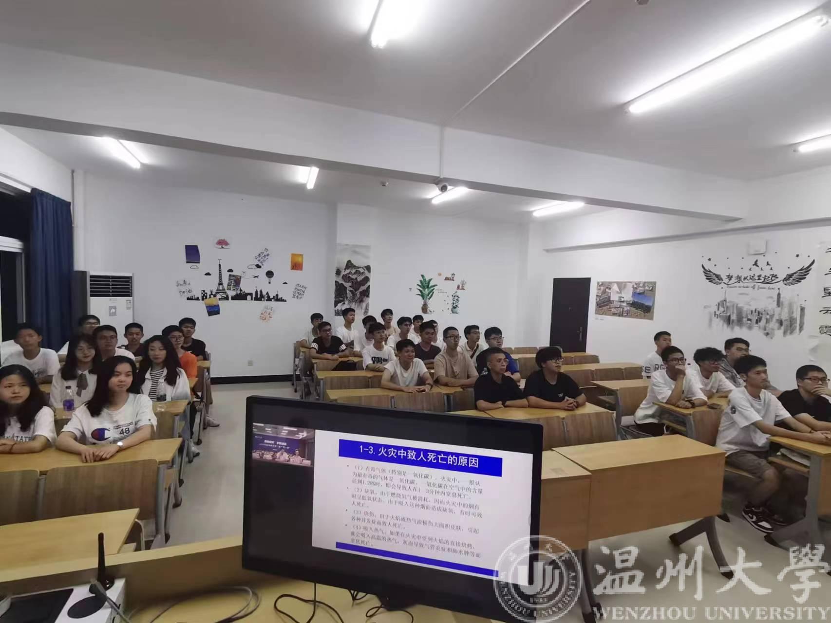 2、消防安全:以大量火灾实例与造成火灾的原因,警示师生正确使用电器,谨慎使用明火,以防火灾的发生。同时,教育大家火灾发生时应如何逃生与自救,以幽默的方式讲述灭火器“提、拔、握、压”的操作方法。