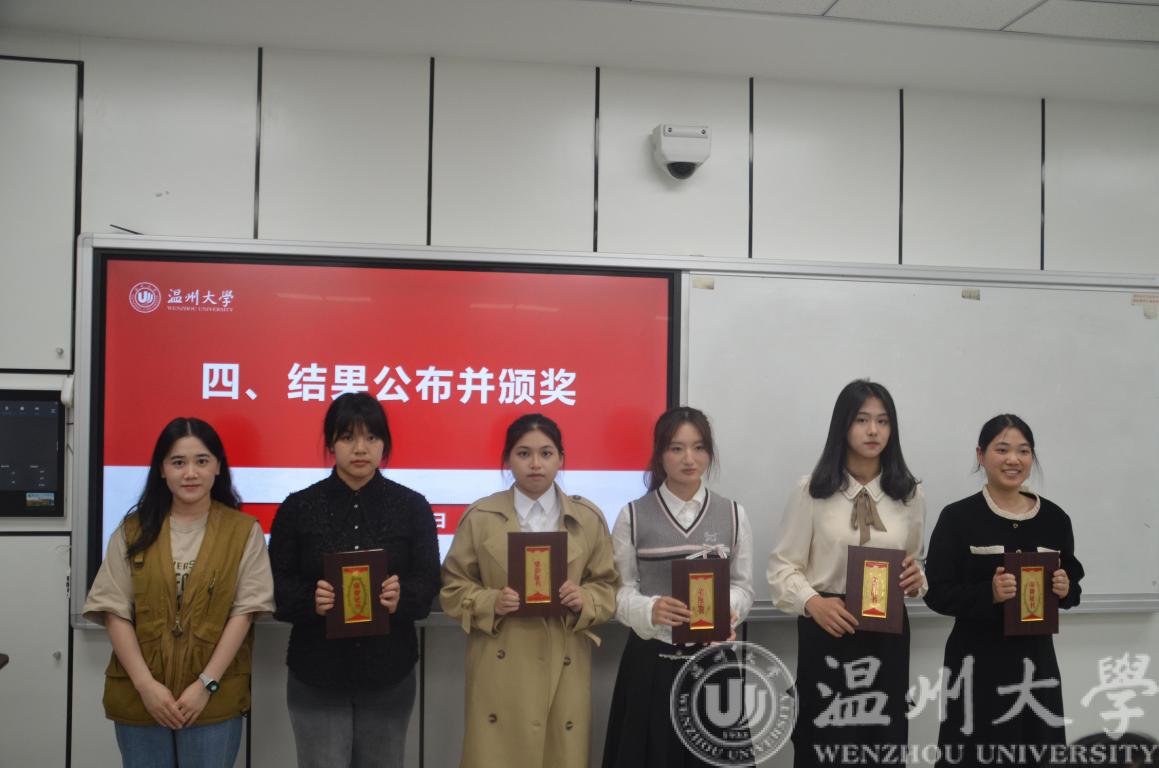 随后,三位评委老师依次为获奖选手颁奖并合影留念。