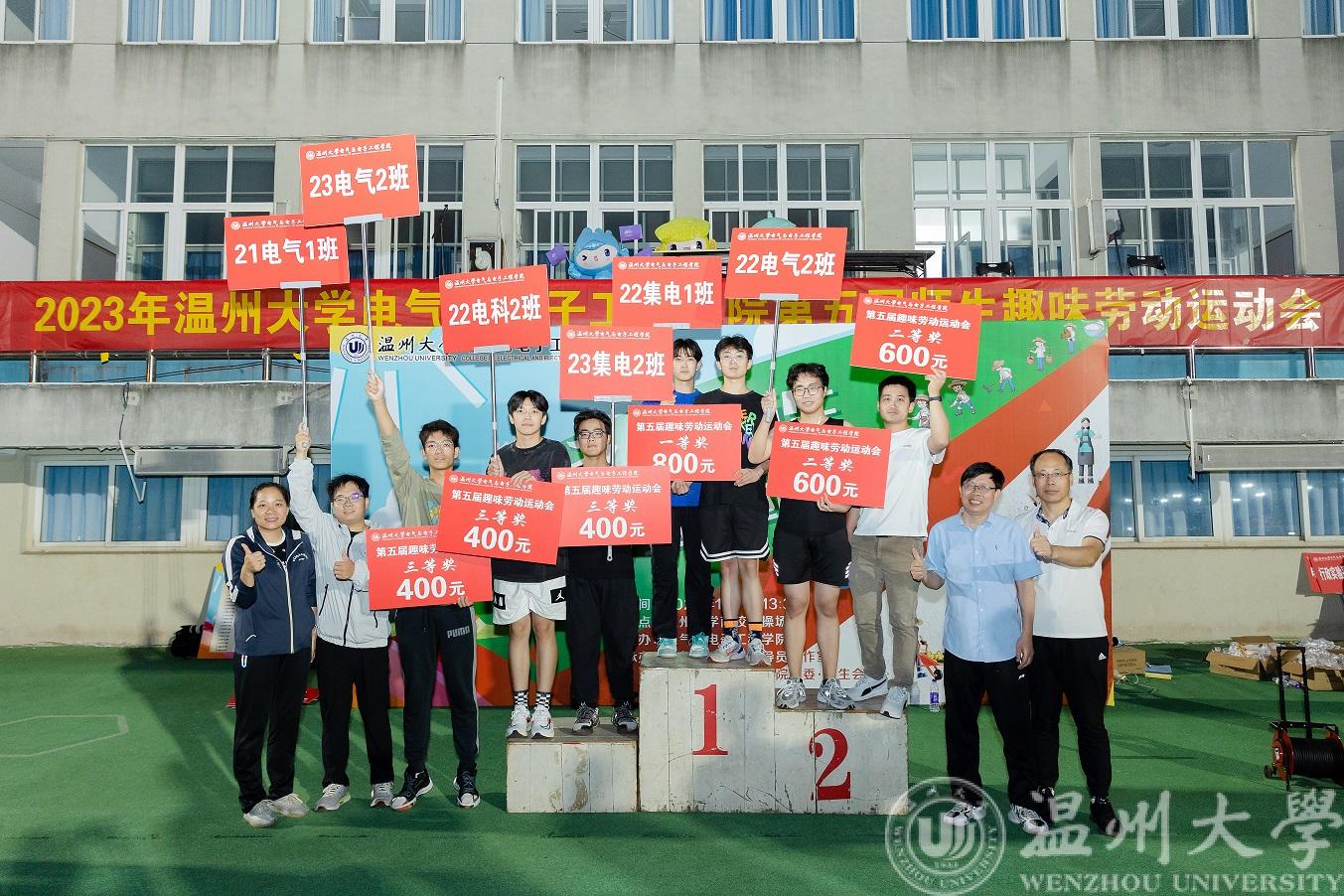 全部比赛环节结束,就到了颁奖环节。公司党委副书记曾蓓蕾,学院电气系主任吴平,电子系主任庄友谊,为获奖班级颁奖。在美丽的夕阳下,为本届师生趣味劳动运动会画上了圆满的句号。