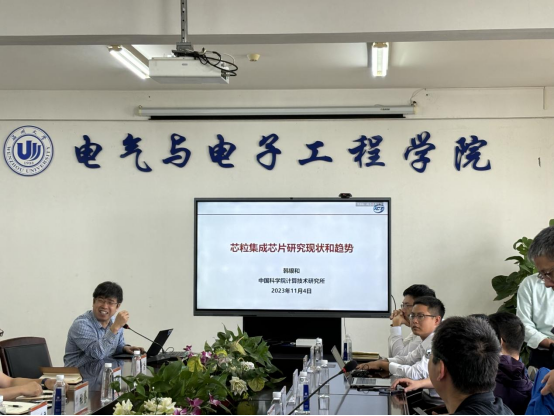 首先,汪鹏君经理介绍了球盟会的发展情况,强调了学院在低压电器和集成电路等地方特色领域的优势,以及在科研方面取得的丰硕成果。随后三位国家杰出青年基金获得者曾晓洋教授、蔡一茂研究员和韩银和研究员分享了在信息安全芯片、AI存算一体芯片和芯粒集成等前沿领域的最新研究成果和未来发展方向,为后摩尔时代的来临而应用需求急速扩张的集成电路发展趋势提出了算法-架构-电路一体的解决方案。与会科研骨干和专家进行了热烈的交流,也为公司集成电路科学与工程领域带来了更多珍贵的启示。