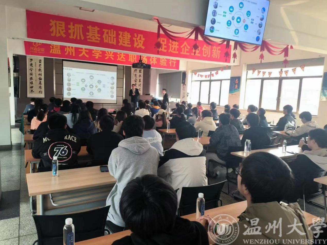 11月16日下午,团队一行抵达杭州兴达,同学们满怀期待走进园区,企业人员热烈欢迎员工们的到来,在对公司主营业务进行简单介绍后,董事长曹国兴进行了40分钟的职业生涯讲座,他结合大树理论,嘱咐年轻人要像树苗一样经历时间的沉淀,沉下心在一个岗位扎下根来,才能在未来有所作为;要像大树一样向上生长,面向阳光,做一个乐观积极向上的人。曹国兴董事长将公司的发展经历和自己的人生经验分享给了员工,最后给予了一些专业建议,鼓励员工提前做好自己的职业规划。之后,同学们参观了企业的成套装备车间和实际工程项目现场。