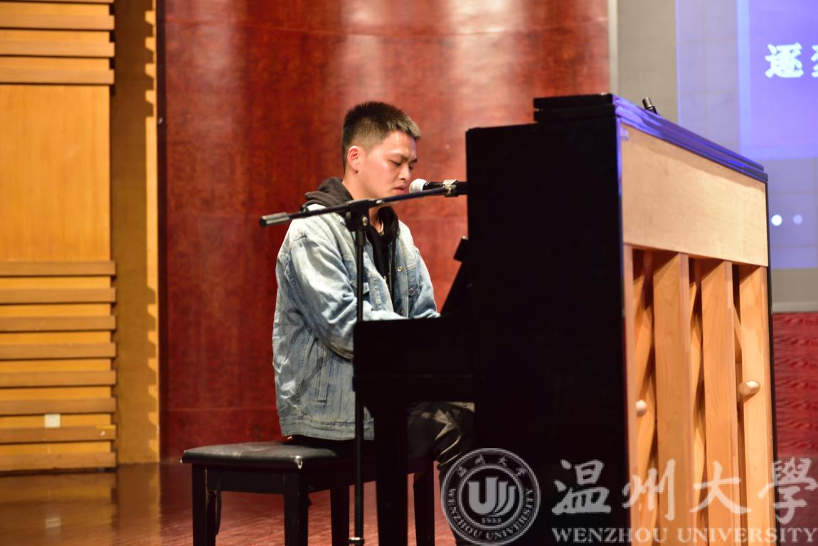 所有选手演唱完毕后,邀请了本次出场活动的嘉宾——网易云音乐人、球盟会官网音乐学院2021级在读研究生贾吉旺学长为观众带来钢琴弹唱《小情歌》。音符在指尖跳动,激情在空气中弥漫,指尖落下的那一刻歌声琴声两相宜,似风华正茂,是茂韵飞扬。