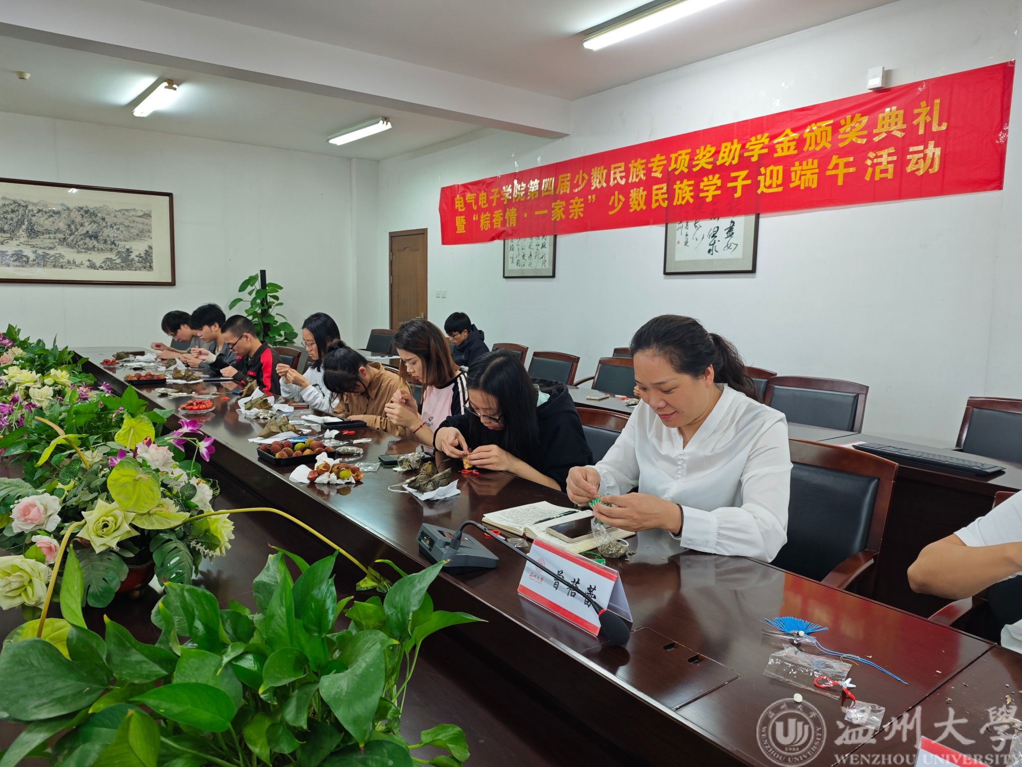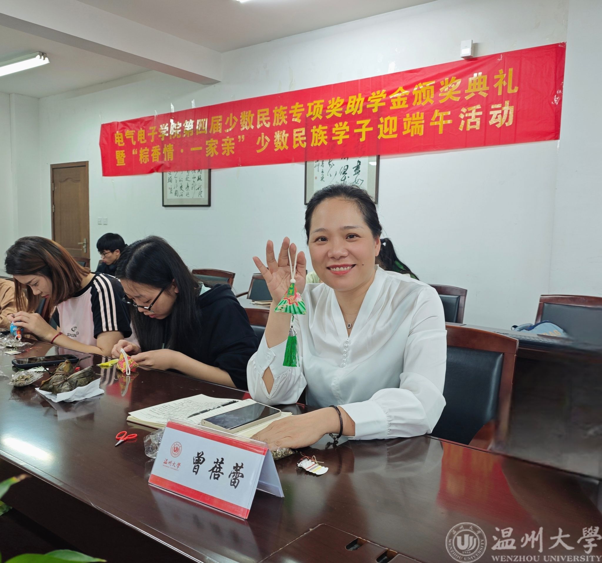 夏意渐浓,粽叶飘香,中华民族的传统佳节——端午节悄然而至。为庆祝这一承载深厚文化底蕴的传统节日,6月5日下午14:00,,球盟会在1A-502举办第四届少数民族专项奖助学金颁奖典礼暨“粽香情·一家亲”少数民族学子迎端午活动。公司党委副书记曾蓓蕾、学工办主任廖晓安及学院少数民族学子出席本次活动。活动由学工办辅导员陈海彤老师主持。