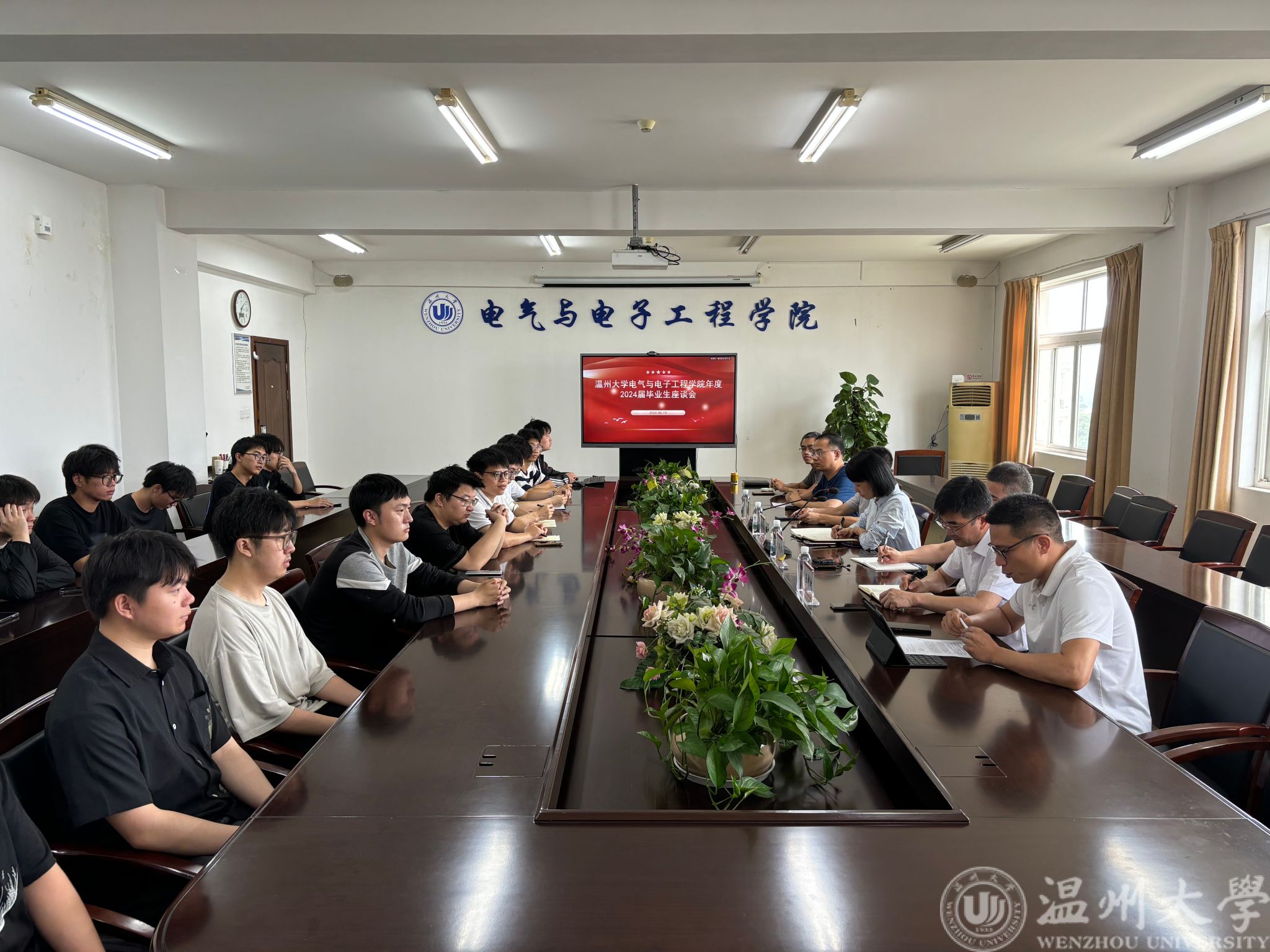 为了更好地了解同学们在校期间的真实感受,助力学院和学校的发展,2024年6月19日下午,公司于1A502会议室召开了2024届毕业生座谈会。公司党委书记陈文远、副经理舒亮、副经理陈孝敬、党委副书记王中对、电子系主任李理敏、班主任代表蒋成玺、教学科科长孙双、学工办主任廖晓安、毕业班辅导员屠昌浩以及二十余名本硕毕业生代表参加了本次座谈会。
