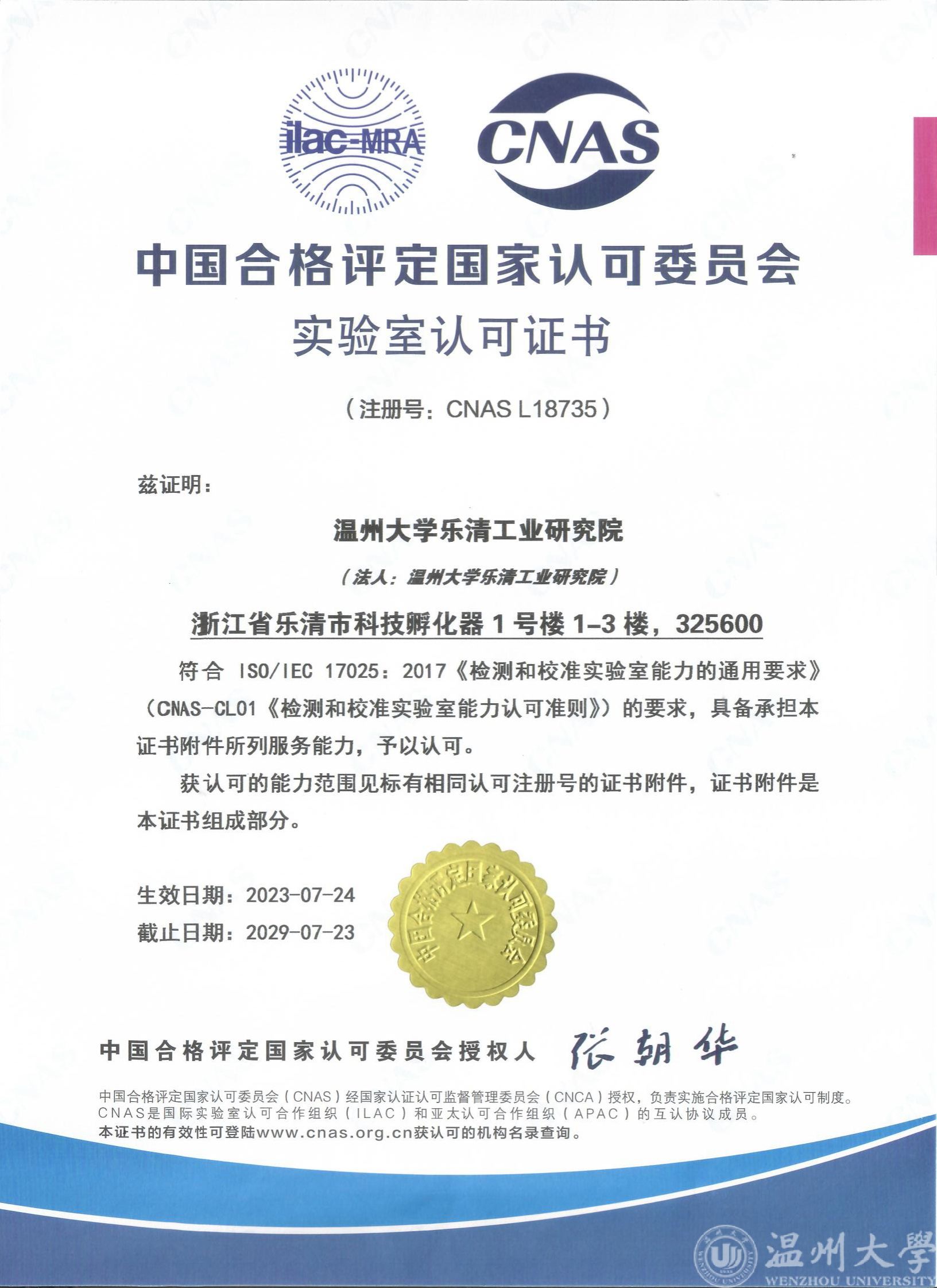 7月5日至7月6日,中国合格评定国家认可委员会(CNAS)评审专家组对球盟会官网乐清工业研究院(以下简称“温大工研院”)进行了为期两天的实验室复评、扩项及变更的现场评审。