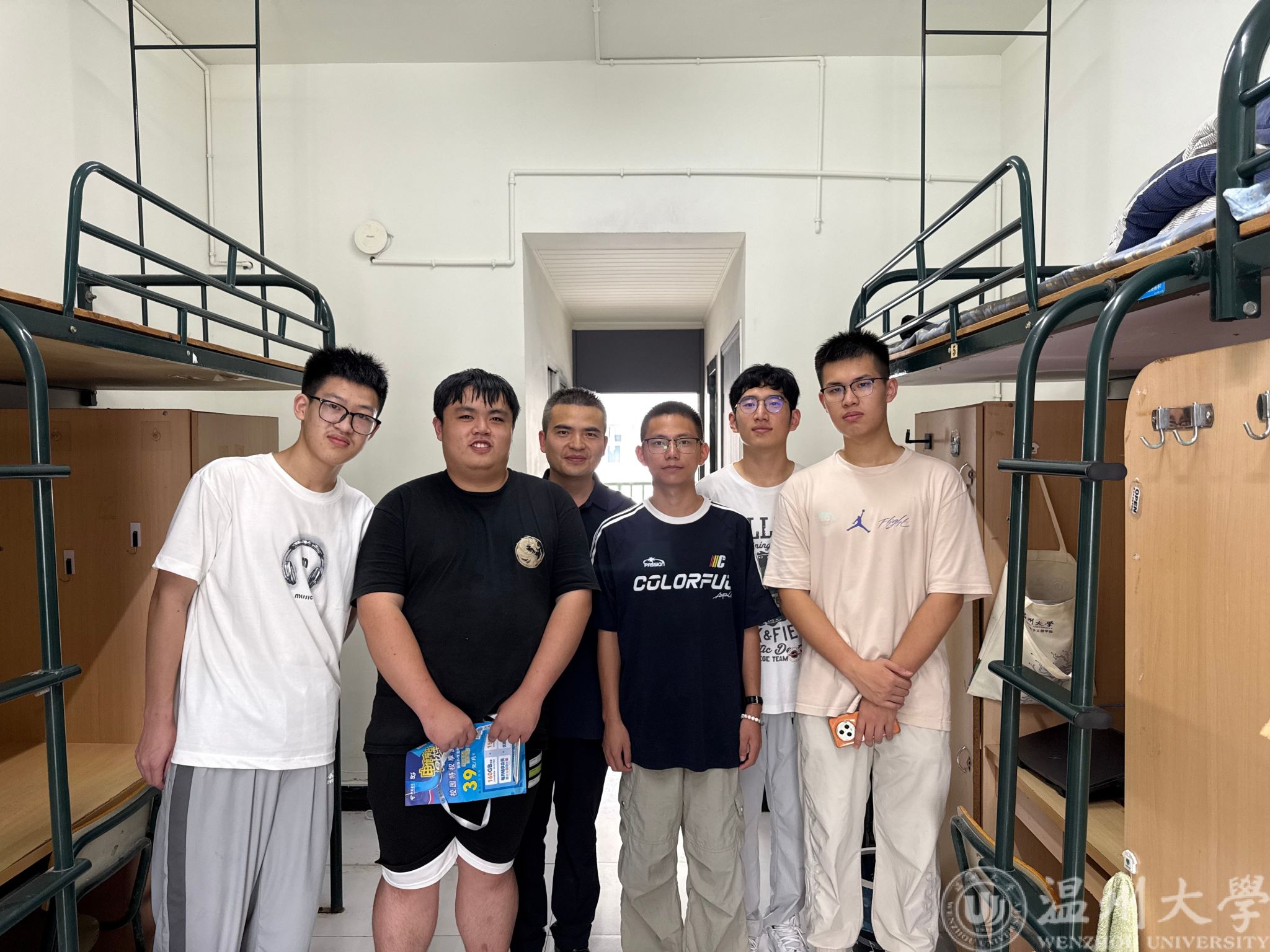 走访期间,学院领导与同学们亲切交流,细致关心大家开学后的生活适应情况,陈文远书记勉励同学们把握青春年华,扎实打好专业基础,不断提升综合能力,为未来成长奠定坚实根基。在谈到学业规划时,舒亮副经理指出,大一是老员工活的关键阶段,课业难度和学术要求将相对于高中进一步提高,他希望同学们端正态度、迎难而上,同时积极参与科创竞赛,以赛促学、拓展视野。翁浩副书记则就寝室氛围建设提出殷切期望,鼓励同学之间团结友爱、互帮互助,营造和谐融洽、共同进步的生活共同体。各位老师反复强调,要坚决守住安全底线,严禁在宿舍开展任何形式的宗教活动,持续维护整洁、文明、有序的住宿环境,切实保障身心健康与校园稳定。