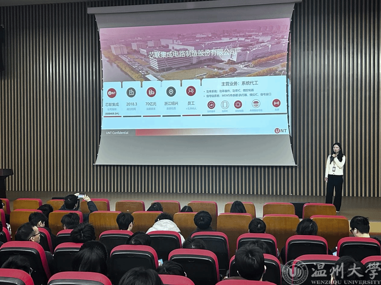 21日上午,学子们到达绍兴市的芯联集成电路制造股份有限公司(简称芯联集成)。芯联集成专注于功率半导体、传感信号链及连接领域的一站式系统代工解决方案,其业务以晶圆代工为基础,向下延伸至模组封装,覆盖全球市场,在中国、日本及欧洲设有多个销售与市场分支机构。交流座谈会中,人力资源部王女士的分享让学子们对职业发展方向有了清晰认知。当被问到“电气专业员工如何对接半导体行业需求”时,工程师结合芯联的人才招聘标准给出了具体答案:“我们急需掌握电力电子、自动控制核心知识,同时了解半导体设备电力驱动、功率芯片应用逻辑的复合型人才。