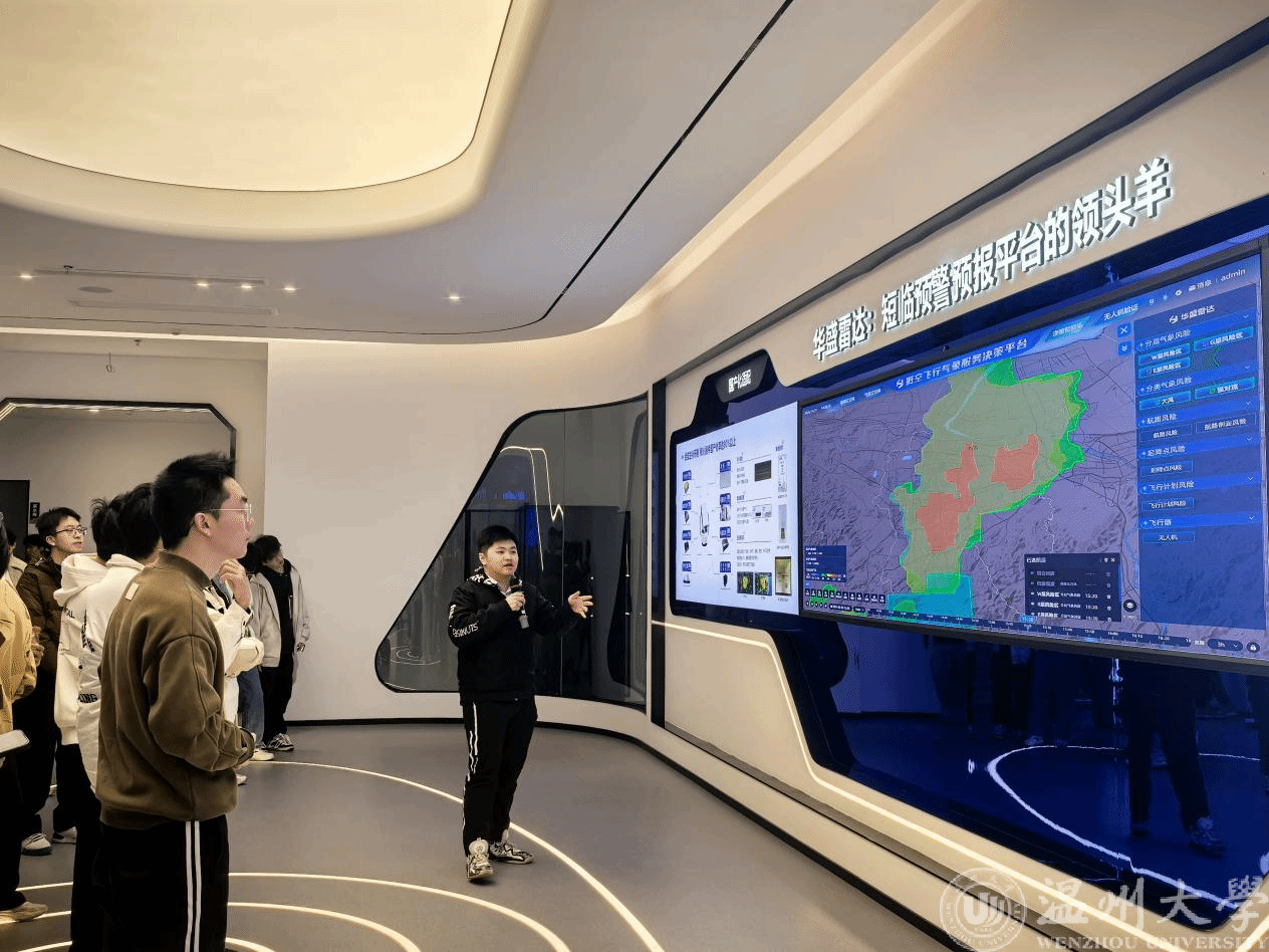 下午,同学们来到第三站:浙江华盛雷达股份有限公司(简称华盛雷达)。华盛雷达作为国内相控阵天气雷达领域的领军企业,从雷达设计仿真到芯片封装,从模块研制到整机装配测试,从嵌入式操作系统开发到应用平台研发,实现了100%自主研发,100%国产可控。在企业展厅,吴总亲自为同学们介绍了华盛雷达的企业历程与所获荣誉,讲解演示了气象监测预警一体化平台。最后,同学们参观了电路板焊接、震动测试等多类功能实验室。