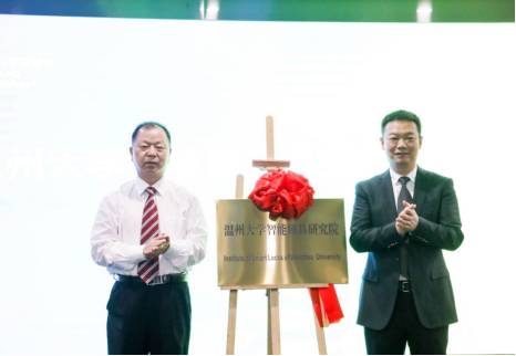 球盟会官网党委副书记吴金法与瓯海区副区长林照光为球盟会官网智能锁具研究院揭牌