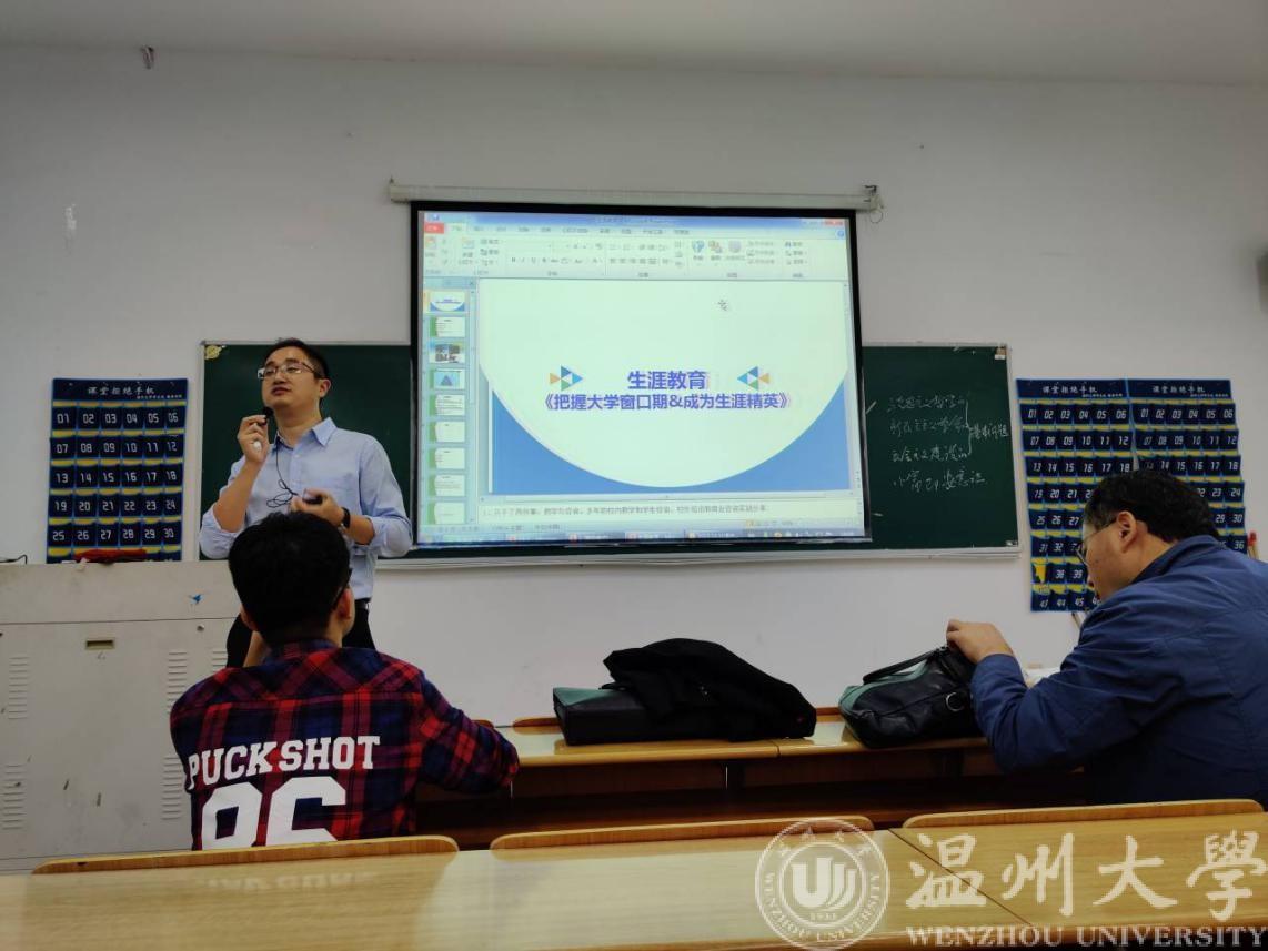 2019年10月31日晚19点,为了使同学们能够更好地掌握老员工活的罗盘,能够做到“我的大学,我做主”,球盟会电气工程系在教学楼1B402教室举办了职业生涯讲座。本次讲座有幸请到了吴玉伟老师来和同学们一起畅谈如何把握大学窗口期,成为生涯精英。吴老师是国家一级职业指导师,国家二级心理咨询师,国家二级企业人力资源管理师,国家认证生涯咨询师,中国人力资源和社会保障部企业EAP高级执行师,美国GCDF全球职业规划师,美国咨询师认证BCC国际职业生涯教练。