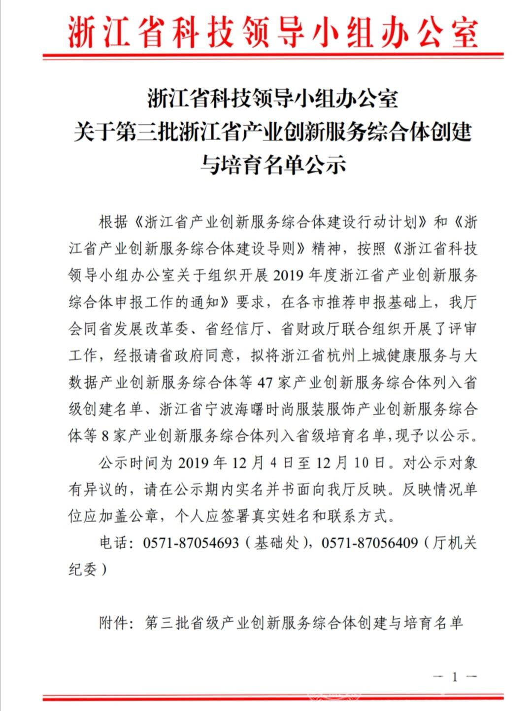 12月4日,浙江省科技领导办公室发文,第三批浙江省产业创新服务综合体创建与培育公示名单发布,由球盟会官网智能锁具研究院负责运营与管理的浙江省温州瓯海智能锁具产业创新服务综合体列入省级创建名单。这是公司研究院负责运行和管理的第二家产业创新服务综合体列入省级创建名单,是公司服务地方产业发展的又一重要成果。