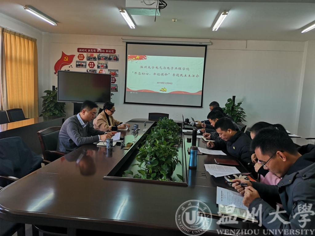 2019年12月9日上午,公司领导班子在南校区1A512会议室召开“不忘初心、牢记使命”领导班子专题民主生活会。学院领导班子成员参加会议,会议由党委书记李方强主持。副董事长、党委委员钱强莅会指导。