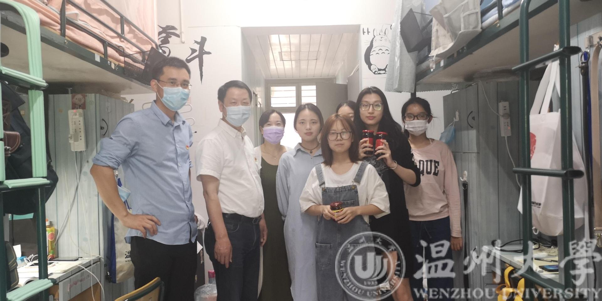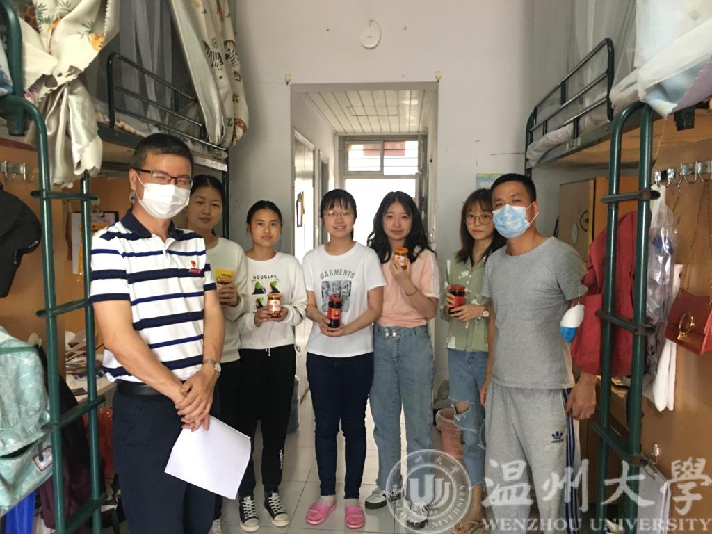 打开宿舍门,迎来的是一张张惊喜的脸庞,教工党员及班主任,一方面向同学们询问了假期生活和学习状况,另一方面也询问了开学返校之后员工们的整体状况,叮嘱他们在校期间要做好防护,理解并遵从学校疫情防控的各项规定,返学并不意味着疫情防控的结束,而更应该提高警惕,高标准严格要求自己。当前是温大疫情管控的非常时期,老师们为了安全虽然都佩戴了口罩,但眉宇之间仍透露出对员工的关爱与呵护,师生们相处融洽,寝室氛围其乐融融,活动渐渐在欢声笑语中结束。