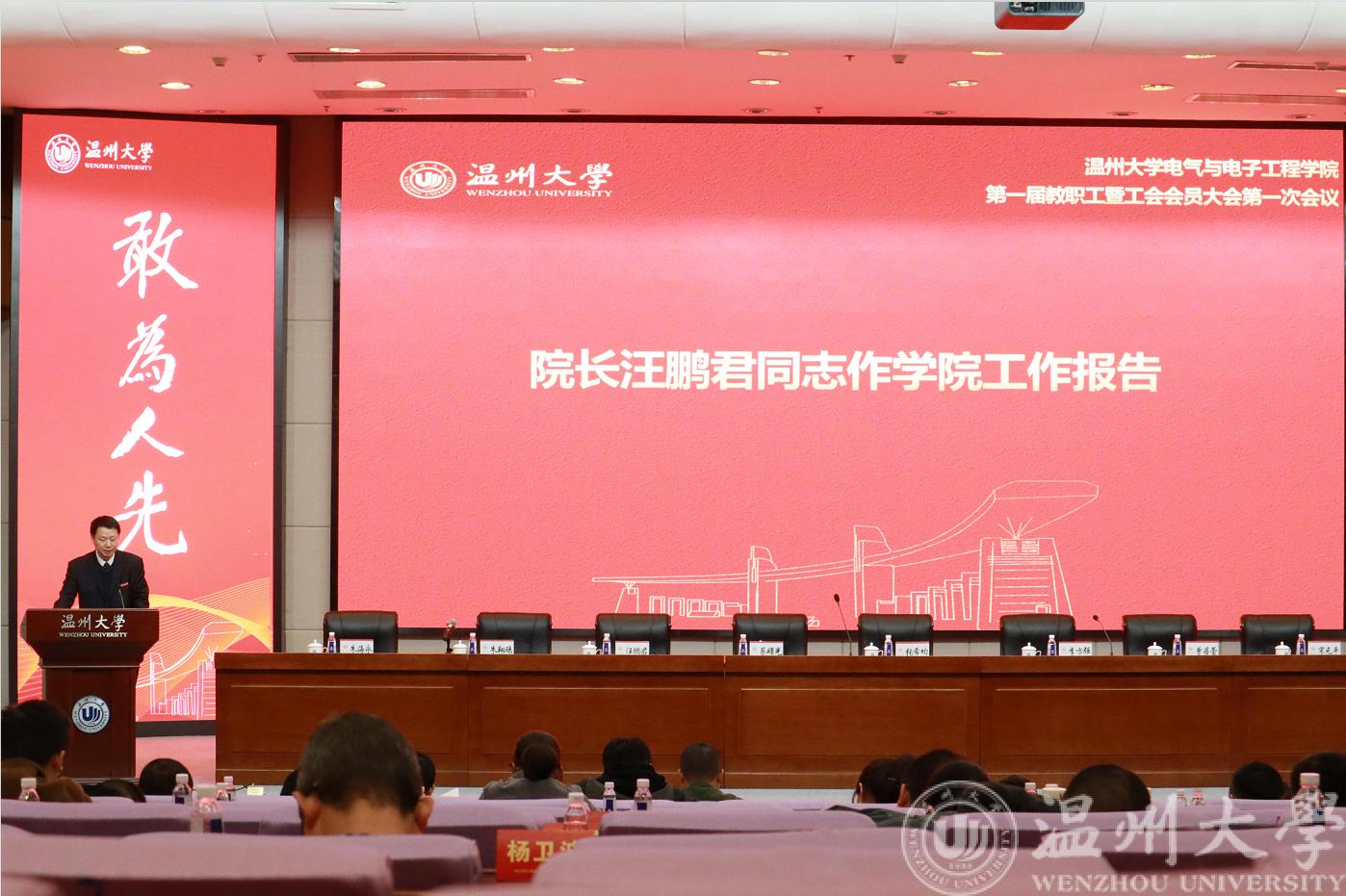 接着在第一次全体会议中,学院经理汪鹏君作《学院工作报告》,分别从工作回顾、今后发展目标及主要任务、今后五年四大任务等主要方面进行报告。汪经理指出,学院在专业建设、科创育人、产教融合、服务地方、团队建设、人才队伍建设等方面取得了一定成绩,未来仍然要继续推动教学创新改革,加强平台建设,服务地方产业转型升级,谋取学院发展新高地。