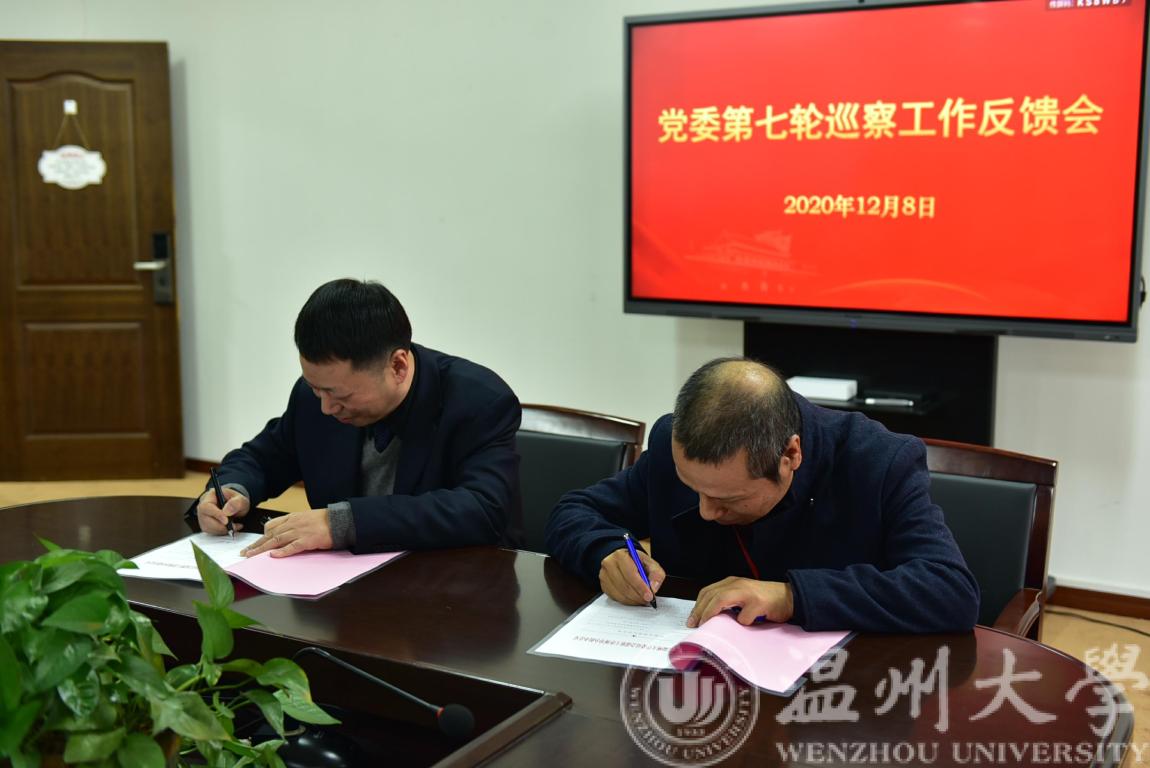 会议主要议程包括:巡查二组组长方建敏反馈第七轮党委巡察情况;学院经理汪鹏君表态发言;党委巡查组与学院双方在反馈意见书上签字背书;校领导潘玉驹发言。