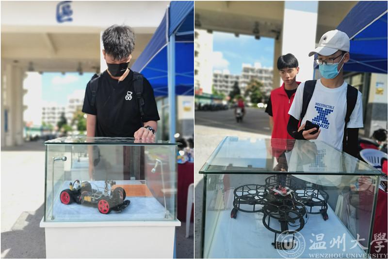 今年8月,“兆易创新杯”第十六届中国研究生电子设计竞赛全国总决赛落下帷幕,公司晋级参赛的三支队伍分别荣获2项一等奖,1项二等奖,是浙江省高校最好成绩。与此同时,在刚刚结束的第十六届全国老员工智能汽车竞赛全国总决赛上,公司本科生代表队获得了全国老员工智能汽车竞赛RT-Thread 创新专项奖全国第一的好成绩,创历史新高。因此,为培养新生的科创意识和科创思维,学院将部分参赛作品拉到迎新现场,进行展示,让青年学子步入大学校门就能感受浓浓的科创氛围,鼓励和引导他们感悟科研精神,积极树立“科研报国”的鸿鹄之志。