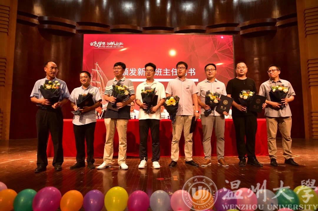 随后,朱翔鸥副经理和陈孝敬副经理为2021级八位新生班级班主任颁发班主任聘书,同时为了迎接即将到来的第三十七个教师节,新生班级代表上台为班主任老师献上鲜花,以此表达对班主任老师的感激之情。