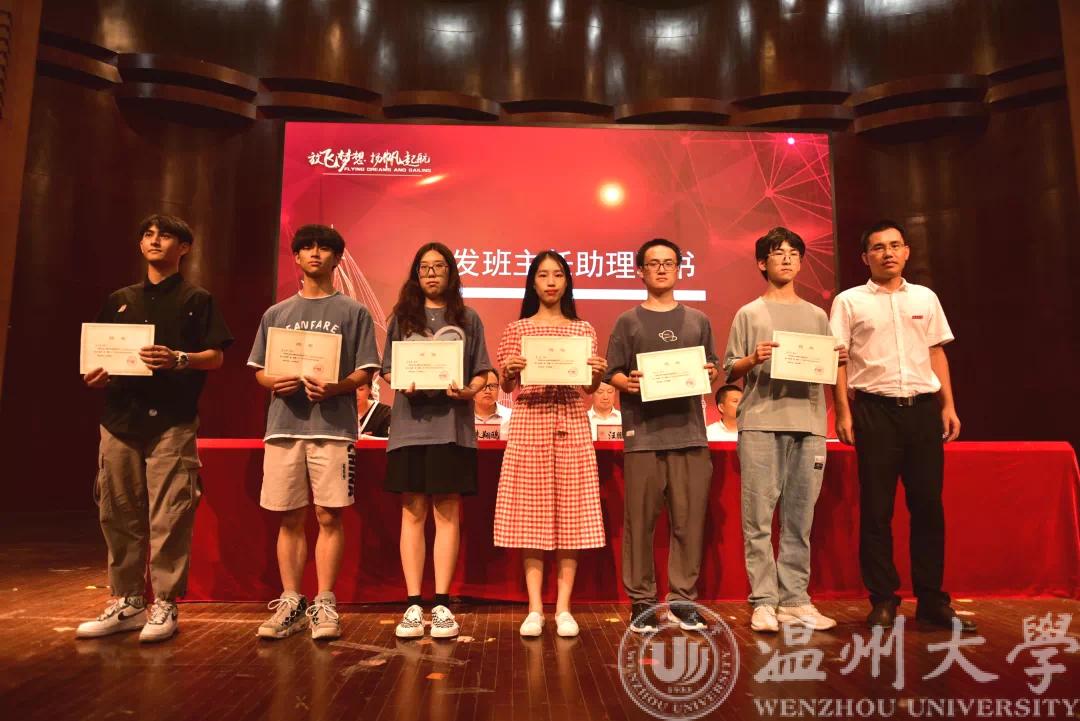 典礼第五项,由朱海永副经理向给予2021级新生帮助和热情的6位本科生班主任助理颁发证书,并对他们表示感谢。