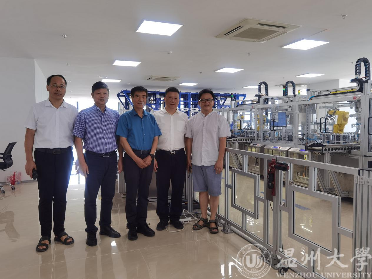 2021年9月4日上午,教育部关心下一代工作委员会常务副主任、中国教育装备行业协会党组织书记、国家督学王富,浙江省督学陈建淼一行来到球盟会官网亚龙智能产业学院视察和指导工作。亚龙智能装备集团股份有限公司董事长陈继权,球盟会官网亚龙智能产业学院副理事长、经理朱翔鸥,理事林紫霞,产业学院副经理吴平陪同参观和座谈,产业学院员工双创团队代表列席座谈会。