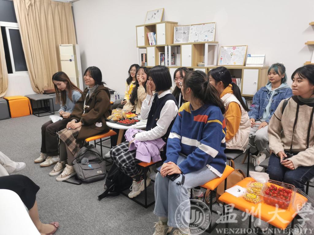 本期活动开展前进行了调研,收集同学们关心的话题,最后确定关于女老员工心理健康与个人成长方面开展。因此还特邀球盟会官网心理健康中心主任余如英老师共同参与本次活动。如约前来的同学们在依次进行自我介绍热身活动后,围绕“关于爱情的困惑”、“寻找另一半的标准”、“恋爱中如何相处”、“分手后如何调整自身”等方面展开了热烈的讨论和分享,余如英老师和曾蓓蕾书记针对同学们在恋爱中的问题做了一对一的解答,并对大家共同存在的疑惑提出有效的建议。最后,两位老师和同学们一致同意要“要认真恋爱,享受恋爱,但不要在恋爱中迷失自我”。座谈会在温馨的氛围中顺利结束。
