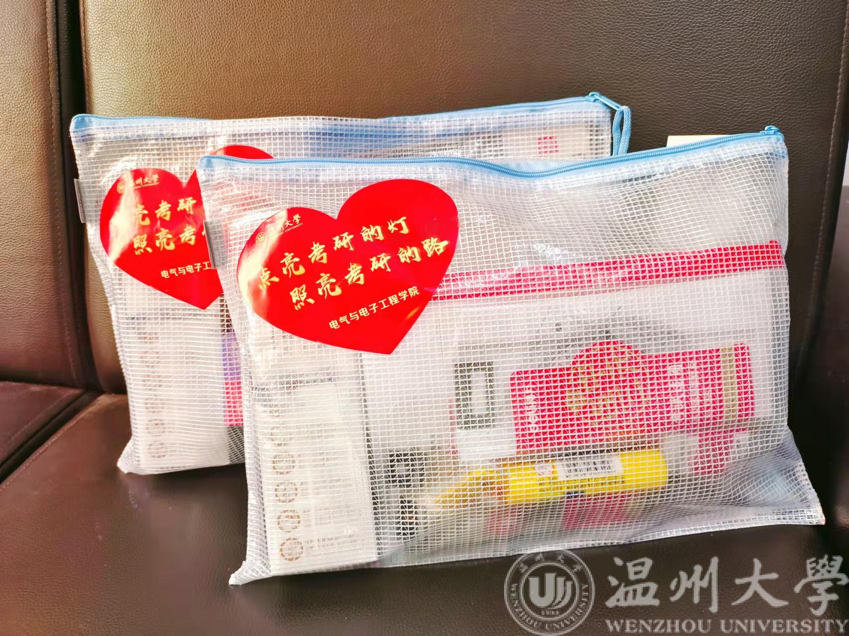 学工办主任廖晓安老师在发放礼包的同时也叮嘱同学们在考研复习的关键阶段要坚定信心,注重复习方法,强调劳逸结合对待考试。