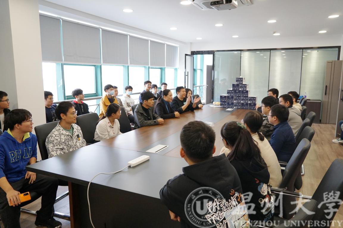 到达研究院后,首先由曾书记主持召开了一场座谈会。会上,同学们分享了他们在乐清工业研究院的学习生活,曾书记向同学们表达了学院的关怀,并送上慰问品。