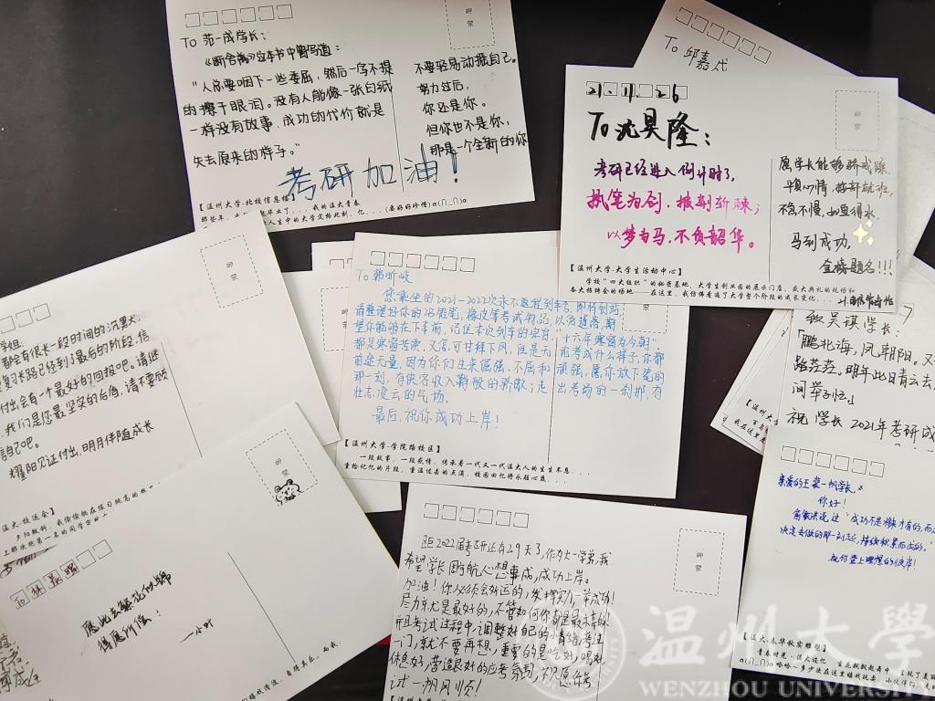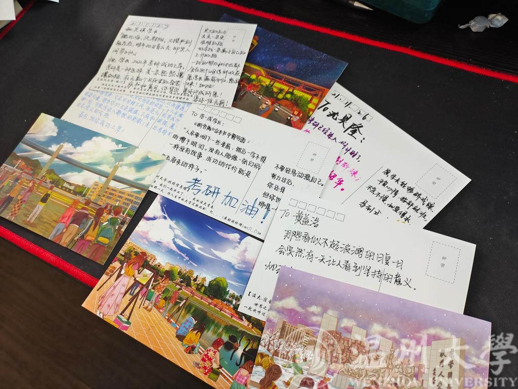 参与此次考研祝福的大一新生郭萧锋说:“明信片不仅是我们对学长学姐考研成功的真挚祝福,也是对自己未来人生的满满期待。祝学长学姐们都能够金榜题名,成功上岸!”