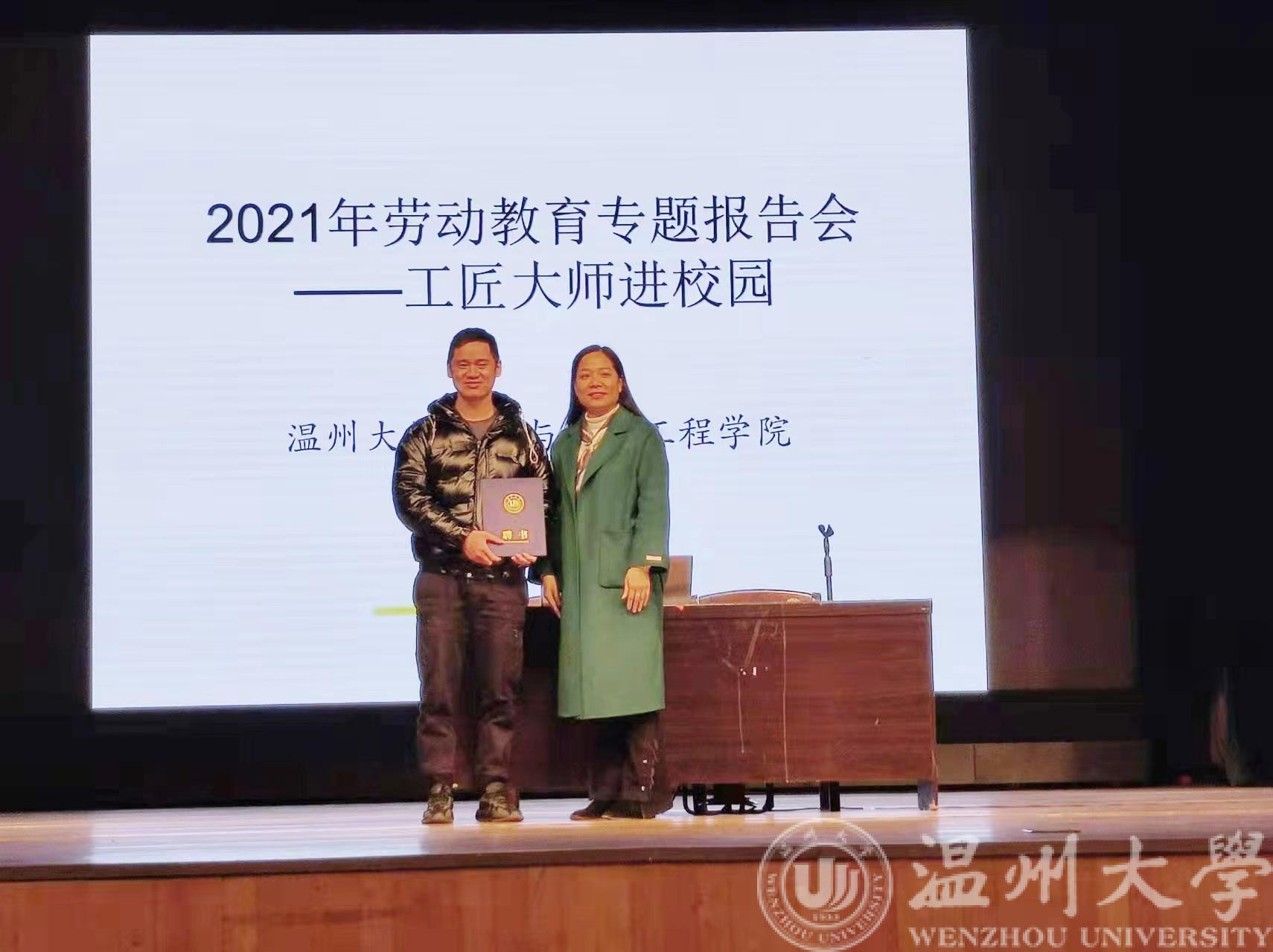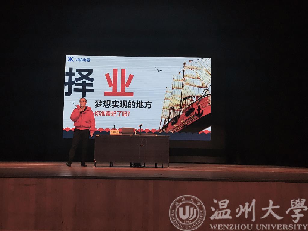 12月1日,球盟会劳动教育专题报告会之工匠大师进校园活动在育英大礼堂拉开帷幕。此次劳动主题报告会,学院特别邀请了浙江省的工匠大师、温州市劳模何升顺老师和兴机电器公司人事部门负责人邵新雷为21级和20级员工开讲,公司党委副书记曾蓓蕾出席了此次活动,活动由学公办辅导员潘龙飞主持。