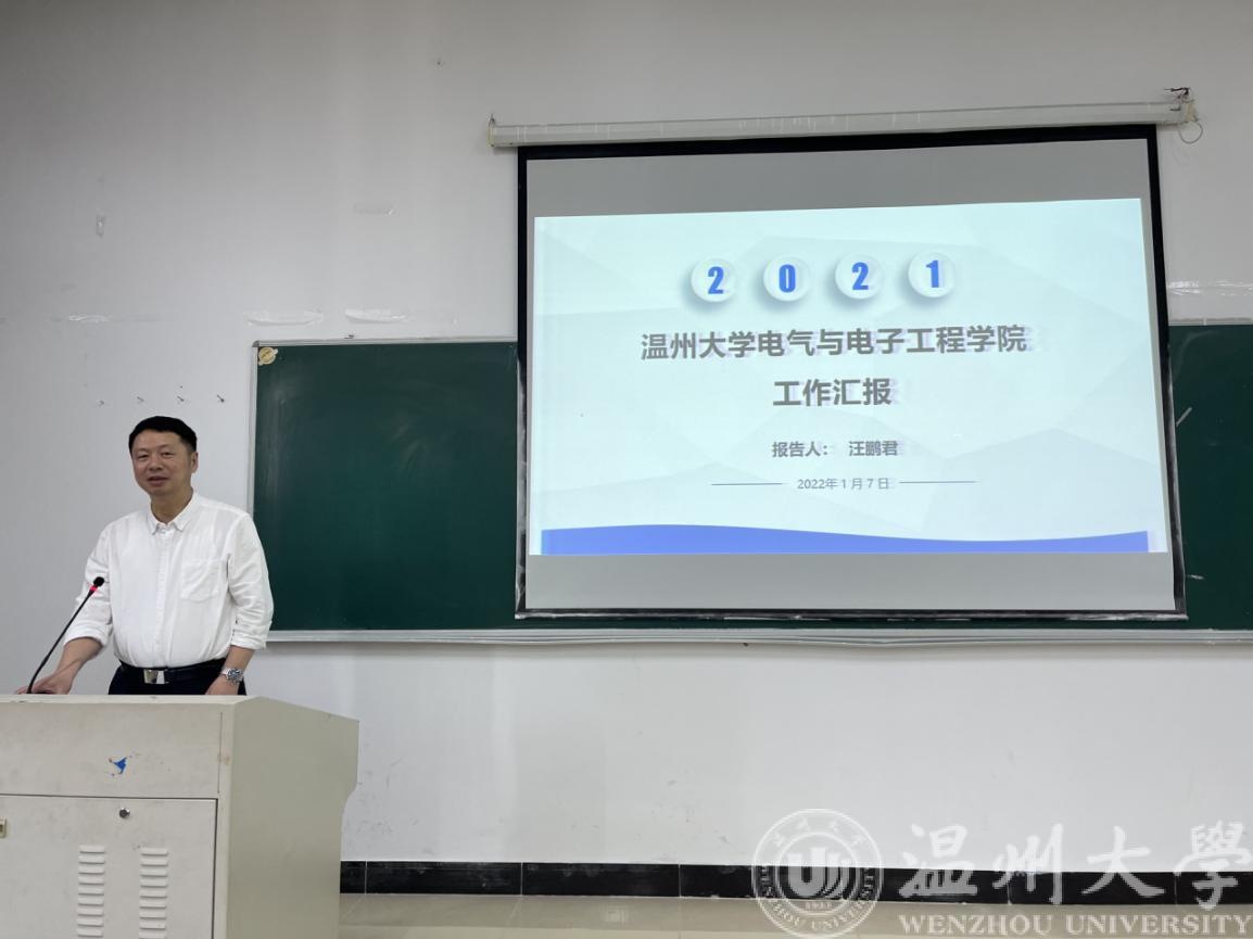 随后汪鹏君经理对学院去年的主要工作进行总结汇报,包括人才培养、学科科研、服务地方、团队队伍、党组织建设等多个方面。