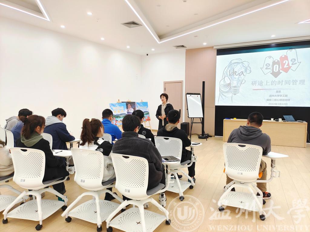 为帮助公司考研学子合理规划考研时间,提高学习效率,帮助员工掌好考研的“舵”,以免梦想小船“偏航”,3月23日晚,公司特邀员工工作部副部长,国家二级心理咨询师吕乐在老员工活动中心幸福工坊为2023届考研学子带来“幸福时间管理”讲座。