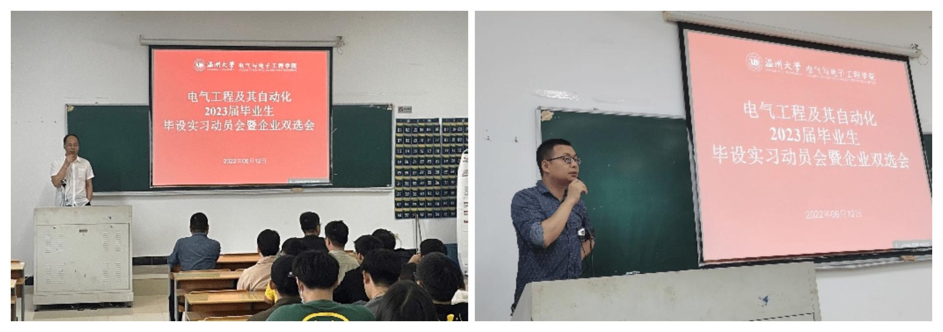 毕业设计和专业实习是本科教学计划中非常重要的实践性教学环节,是结合生产实践,锻炼实践能力和创新能力的重要途径,是员工从学校到社会、从理论到实践的转变。为做好2023届毕业设计和专业实习工作,6月12日上午,电气工程系在1B402举办了2023届毕业生毕设实习动员会暨企业双选会。参加本次会议的有电气系主任吴平、专业实习负责人闫正兵、19电气工程全体同学以及部分受邀企业。