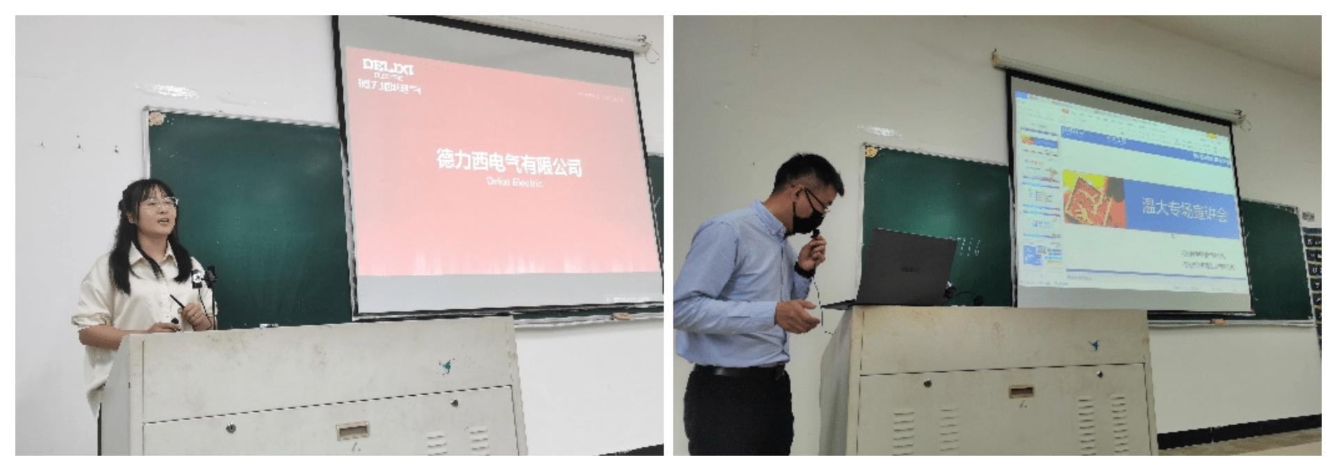 随后,鸿晟电力设计咨询有限公司、浙江九宏电力工程有限公司、德力西电气、杭州兴达电器工程有限公司、杭州极能科技有限公司等企业做了现场宣讲,向同学们介绍企业的招聘需求、岗位要求和待遇等信息。同学们与感兴趣的企业进行了现场交流。