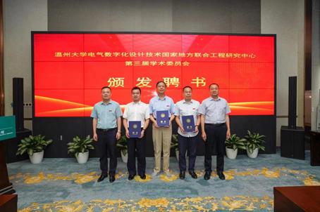 电气数字化设计技术国家地方联合工程研究中心常务副主任朱翔鸥教授主持了开幕式和闭幕式,国网温州供电公司张仁敏书记致欢迎辞。球盟会官网潘玉驹副董事长宣读了“球盟会官网电气数字化设计技术国家地方联合工程研究中心第三届学术委员会”名单,聘请罗安院士担任主任委员,薛禹胜院士、欧阳晓平院士、杨华勇院士、陈勇院士、李得天院士担任副主任委员,章兢教授、雷源忠教授等9位专家担任委员。会上,潘玉驹副董事长与张仁敏书记为在场委员颁发了聘书,并为“电气数字化设计技术国家地方联合工程研究中心-国网浙江省电力有限公司温州供电公司科研基地”举行了隆重的揭牌仪式。