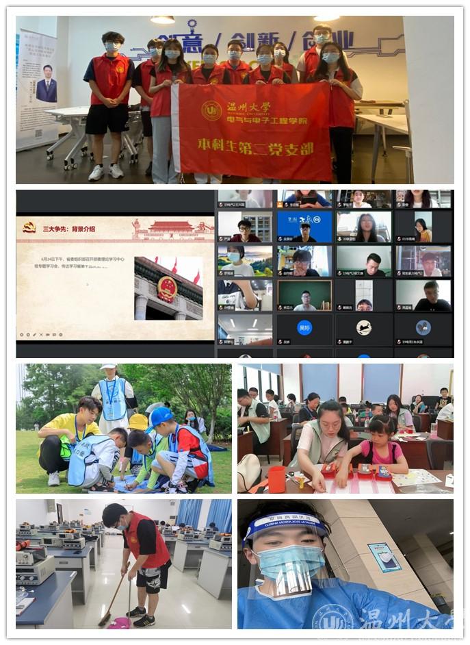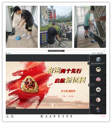 7月10日下午,本科生第一党支部组织召开线上支部大会,会前支部党员学习省第十五次党代会报告精神,并递交学习体会。会上,支部党员许柯青、徐虞昊、方正宇作为党员代表,从员工的党员的角度分析的两个先行的具体意义以及两个先行对于老员工党员的要求和意义。会议结束后,党员同志们都行动起来,在公司党员打扫了学院教室,摆放整理了单车,维护了校园环境;不在校的党员,深入社区,打扫小区楼道,拾取小区内的垃圾等志愿服务活动。