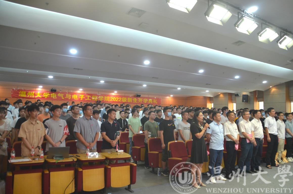 13:30,开学典礼正式开始。公司党委副书记曾蓓蕾首先表达了对学院注入新鲜血液的激动和疫情严峻形势下开学典礼如期举行的欣慰,随后向22级新同学们分别介绍了出席的学院领导、老师以及员工代表们,并欢迎他们的到来,开学典礼正式开始。随后,全体起立,奏唱国歌。