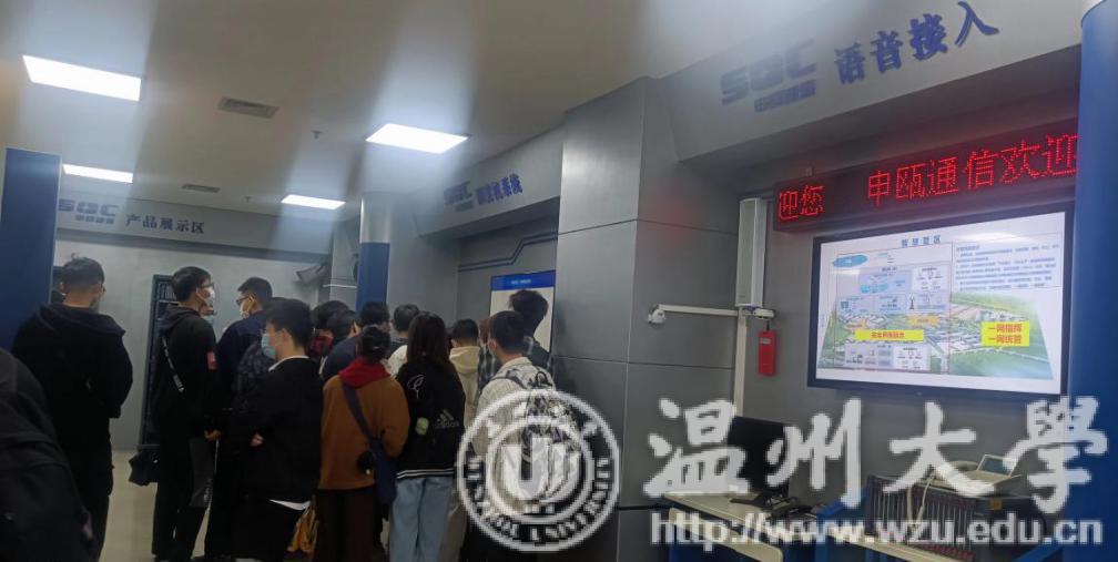 申瓯通信设备有限公司林经理先后热情地接待电科和电信专业员工。同学们分批参观了公司展览大厅、SMT生产车间、装配测试车间,对程控交换产品、调度产品的生产和应用有了直观的认识。最后,同学们在会议室与公司经理、工程师进行了深入交流,咨询了公司产品技术细节、业务模式、薪资待遇、用人需求等问题。