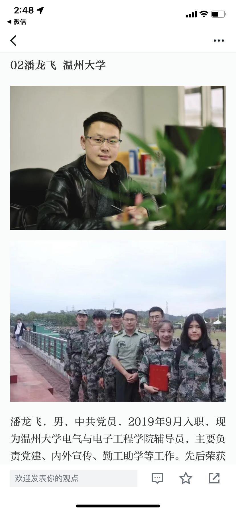 3月10日,学习强国刊发了一篇名为《你我共览,高校辅导员工作室十佳辅导员故事》的文章,该篇文章系全国高校辅导员辅导员工作室,为深入学习贯彻落实习近平新时代中国特色社会主义思想,进一步加强辅导员队伍建设,发挥先进典型的激励示范作用,进行的十佳工作者评选和展示活动,球盟会辅导员潘龙飞也在其中。