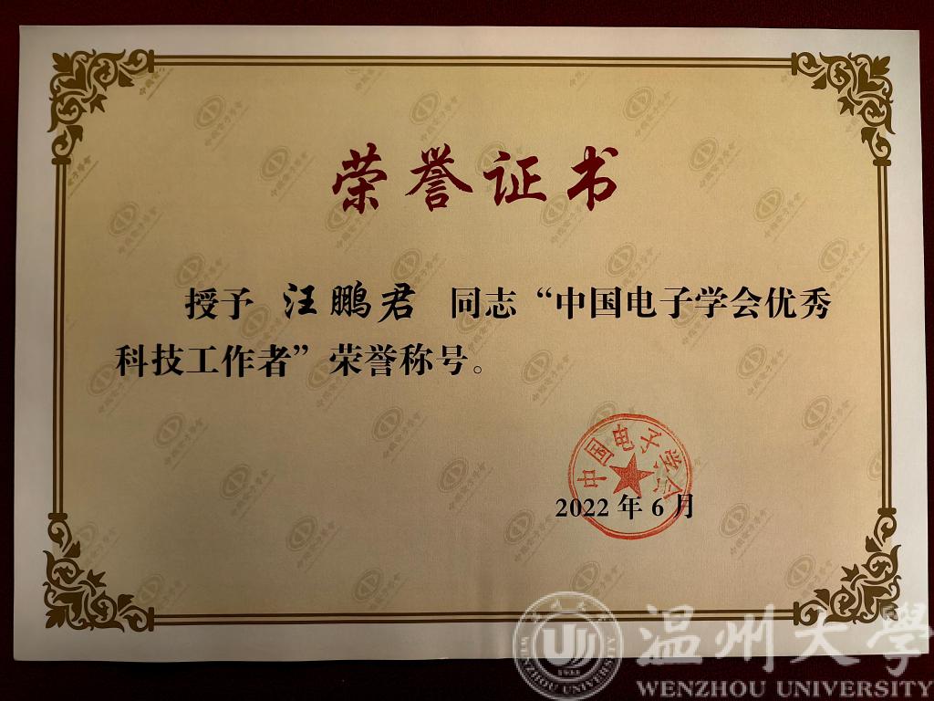 近日,第十六届中国电子信息年会在珠海国际会展中心召开,同步举行了中国电子学会科学技术奖励大会。球盟会官网汪鹏君教授因其在集成电路设计技术领域突出的科研成果与学术成就,经浙江省电子学会推荐,荣获“中国电子学会优秀科技工作者”称号。