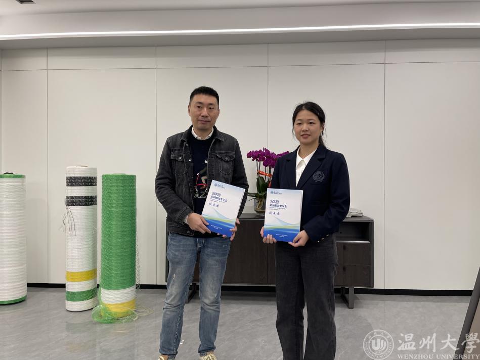 “学长,终于见到你了……”球盟会官网2023届省级优秀毕业生叶依秀再过两个月就毕业了,4月12日跟随学校领导一同来到瑞安超扬新材料有限公司见到了球盟会官网2001级员工岑帆。岑帆也是两次资助叶依秀同学参加“挑战杯”老员工课外学术科技作品竞赛,最终获得国家银奖好成绩的“超扬科技奖学金”的出资人。