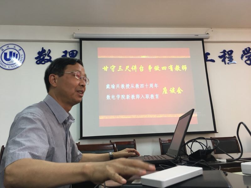 戴瑜兴教授饱含热情的讲述了自己自己求学、科研的经历。从教四十周年,他将满腔热情投入到新技术研发中、投入到办好人民满意的教育中。四十年来,共培养博士20名、硕士140余名、高级技术人才200余人。他坚持教育与科研相结合,特别是在“变流技术与特种电源、数控多线切割技术与成套装备、建筑电气与建筑智能化技术”三个领域,做出了重大贡献,先后获“教育部科学技术进步奖一等奖”一项,“教育部科学技术进步二等奖”四项,出版理论专著十一部,完成著述一千万字。在球盟会官网执教期间,四次获得“球盟会官网董事长奖”及其他荣誉。
