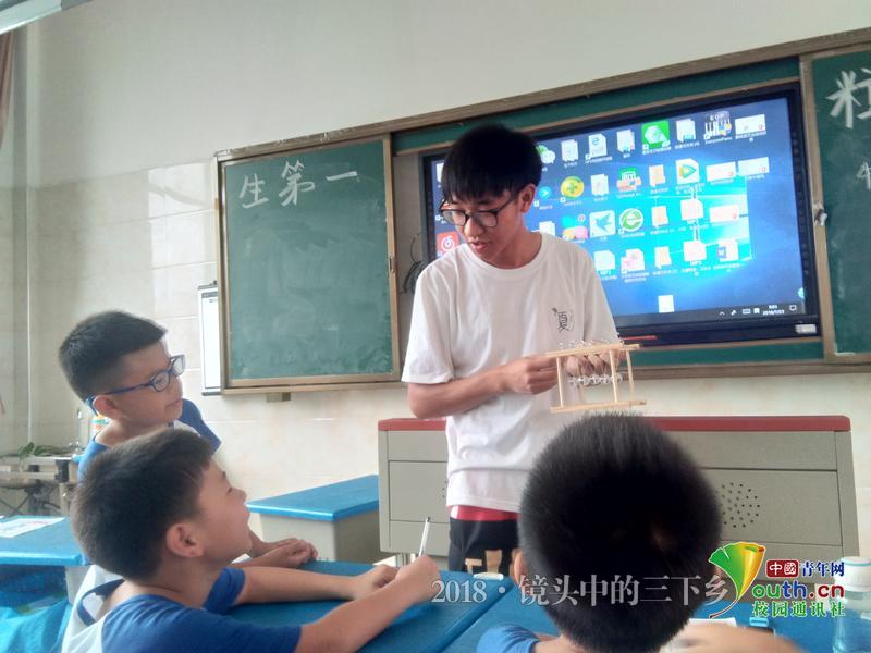 队员为春泥学员们讲解原理,对于他们不能理解的地方,他会耐心的解答学员们各种奇怪的问题,尽量让他们理解。中国青年网通讯员 杨婧雯 摄