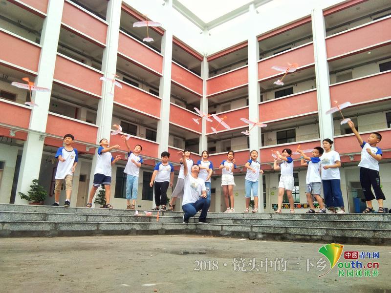 看着自己心心念念的飞机终于飞上天空,学员们都很兴奋,还向队员们发起挑战,想比赛谁的飞机飞得更高更远,有好几位学员超过了队员们。亦师亦友的队员们,带给他们暑假的最好的陪伴。中国青年网通讯员 杨婧雯 摄