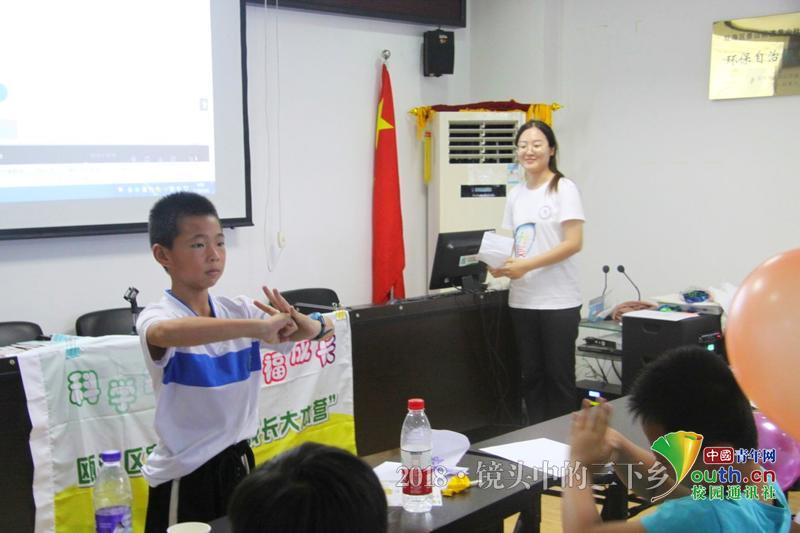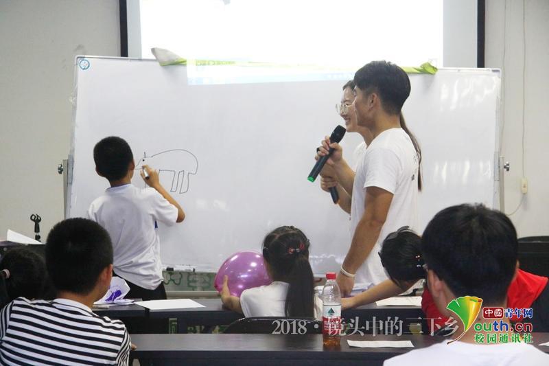 水滴课堂开班仪式上小朋友积极上台参加“你画我猜”小游戏。 中国青年网通讯员 王鑫宇 摄
