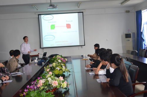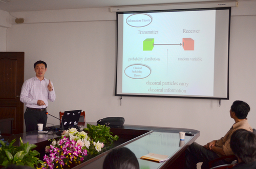 4月18日,首都师范大学费少明教授来公司学术交流,并做了《量子信息和量子计算前沿》的学术报告。费教授介绍了他们提出的关于量子态纠缠度刻画方面的一系列工作,并与公司相关老师和研究生做了深入的探讨。 费少明教授的研究方向主要为量子物理以及相关的数学物理问题,在Phys.Rev.Lett.等杂志发表SCI论文130余篇,在国内外作邀请报告80余次,担任美国数学学会“数学评论”杂志评论员、中德文化教育交流协会理事、意大利科研评估理事会(CIVR)专家组成员,《Advances in Mathematical Physics》和《中国科学: 物理学 力学 天文学》等国际杂志编委。