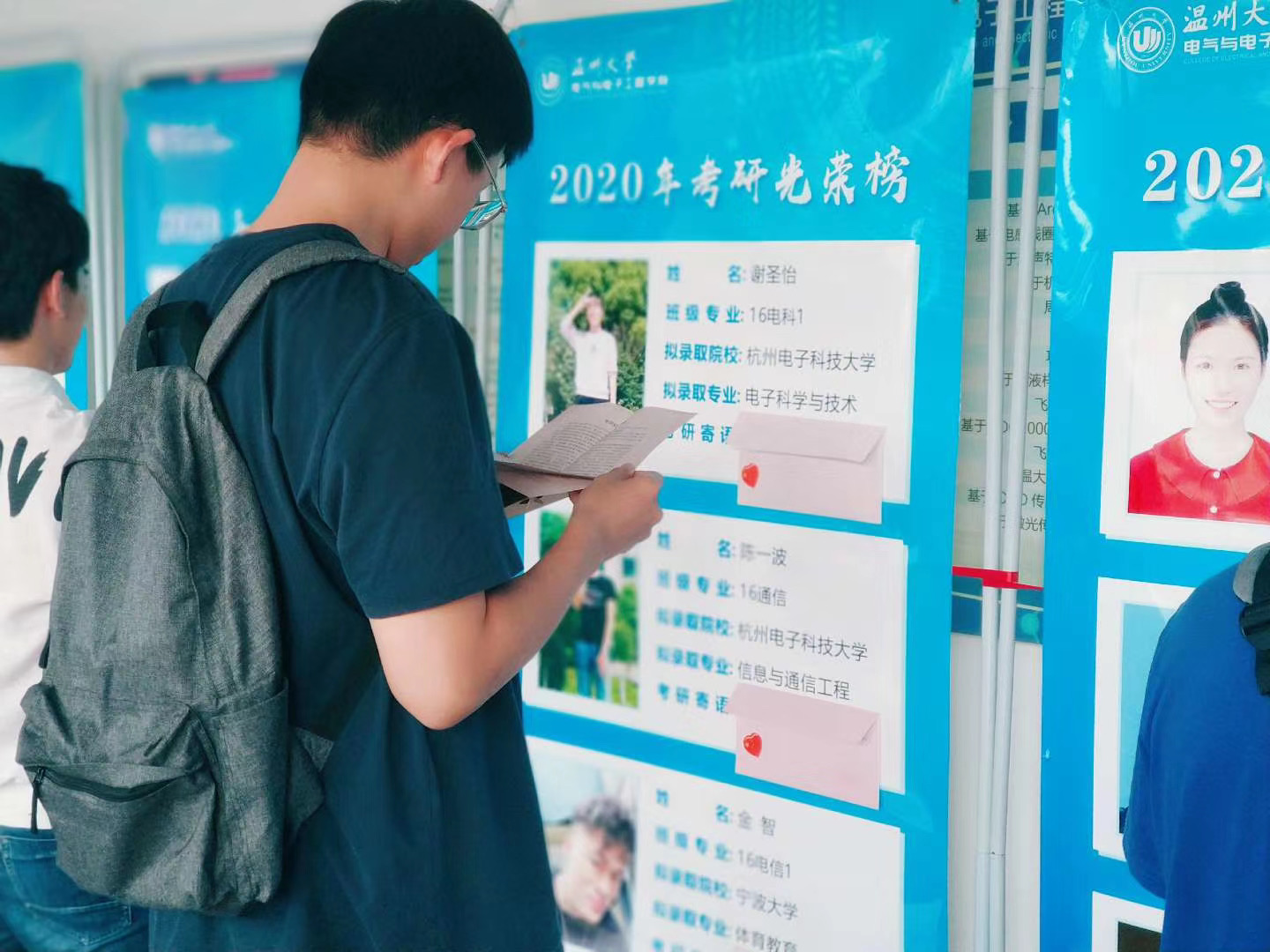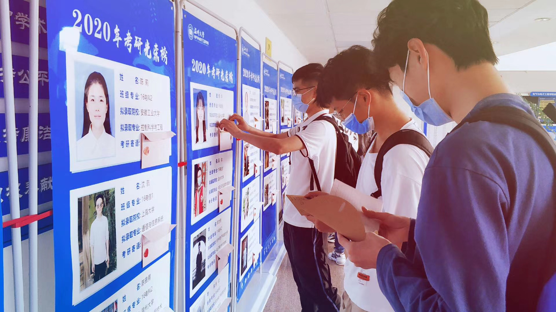 近日,球盟会的一楼大厅里,一面面承载着考研学子心路历程的展览墙,吸引了很多师生的驻足观看。记者了解到,今年该学院有100多位学子报名考研,现有57位学子拟被录取,考研升学录取率达52.8%。